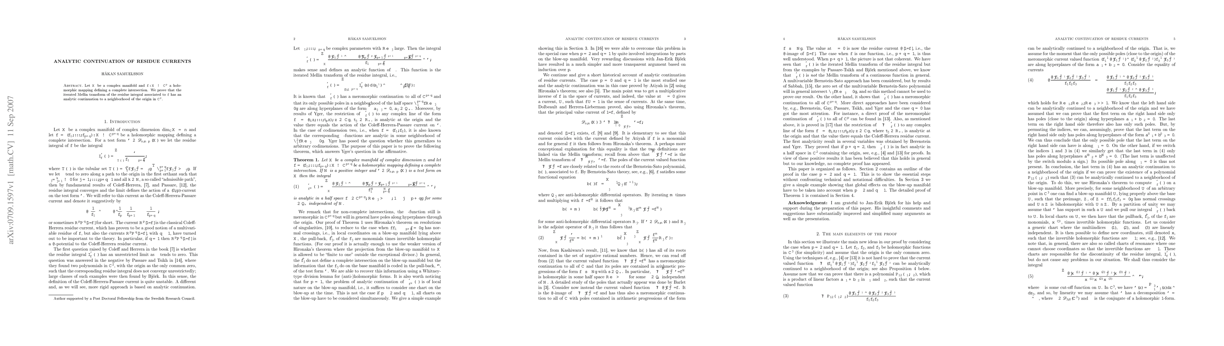 Summary: This paper proves the analytic continuation of the iterated Mellin transform of the residue integral associated with a holomorphic mapping on a complex manifold, extending its validity to a neighborhood of the origin in the target space. The focus is on complete intersections defined by such mappings.
