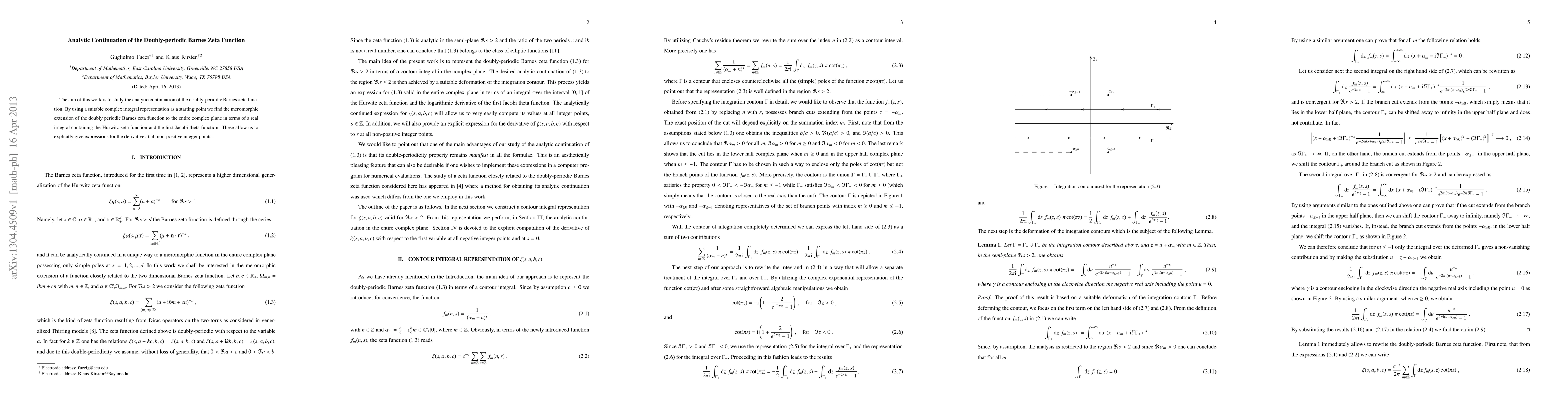 This paper investigates the analytic continuation of the doubly-periodic Barnes zeta function, achieving a meromorphic extension across the entire complex plane via a complex integral representation. The result includes explicit expressions for the derivative at non-positive integer points using the Hurwitz zeta function and the first Jacobi theta function.