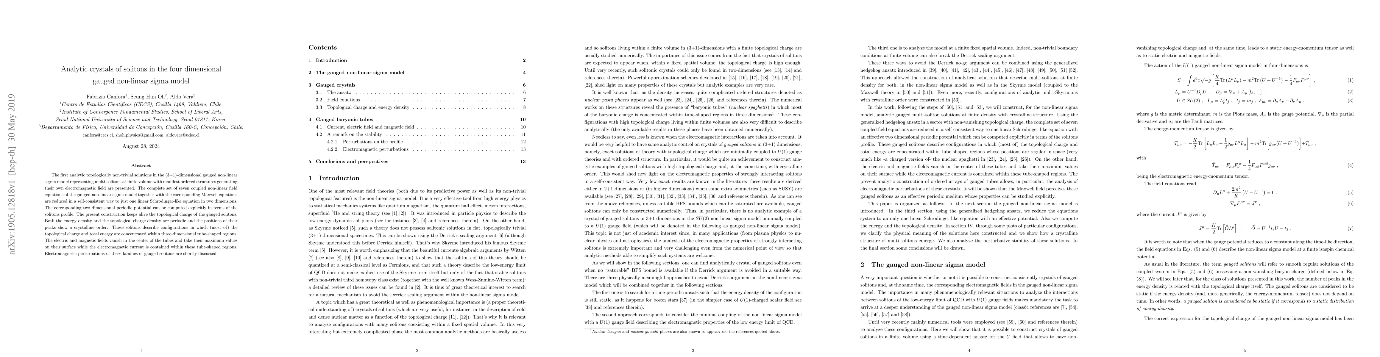 This research presents the first analytic solutions for topologically non-trivial solitons in a (3+1)-dimensional gauged non-linear sigma model, which generate their own electromagnetic field. It reduces a set of seven coupled nonlinear field equations to a single linear Schrödinger-like equation, revealing a crystalline order in the energy density and topological charge distribution.