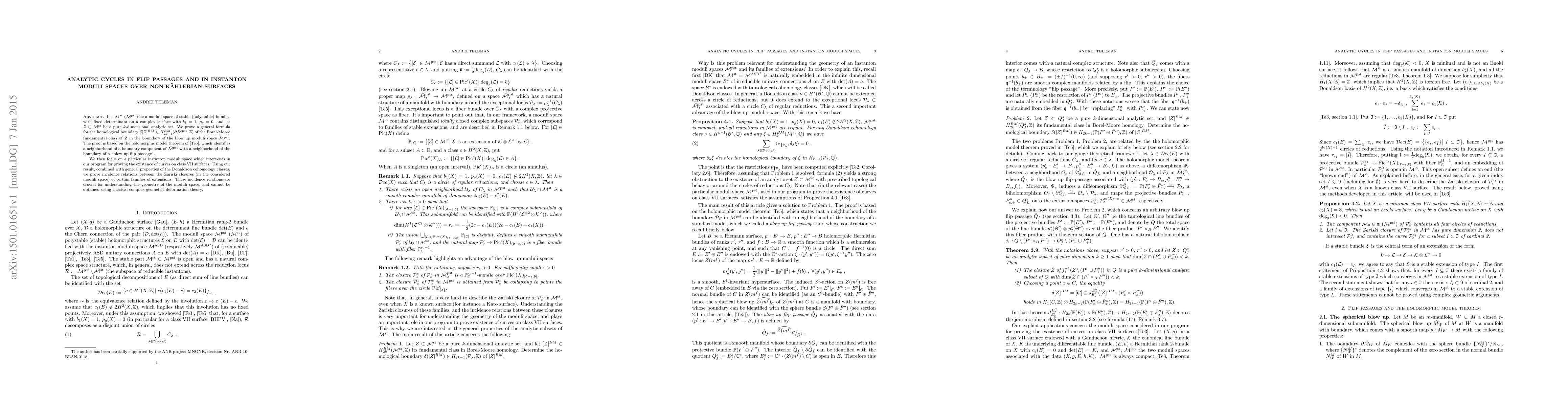 Let $\mathcal{M}^{\mathrm{st}}$ ($\mathcal{M}^{\mathrm{pst}}$) be a moduli space of stable (polystable) bundles with fixed determinant on a complex surface with $b_1=1$, $p_g=0$, and let $Z\subset \mathcal{M}^{\mathrm{st}}$ be a pure $k$-dimensional analytic set. We prove a general formula for the homological boundary $\delta[Z]^{BM}\in H_{2k-1}^{BM}(\partial\hat{\mathcal M}^{\mathrm{pst}},\mathbb{Z})$ of the Borel-Moore fundamental class of $Z$ in the boundary of the blow up moduli space $\hat {\mathcal M}^{\mathrm{pst}}$. The proof is based on the holomorphic model theorem (proved in a previous article), which identifies a neighborhood of a boundary component of $\hat {\mathcal M}^{\mathrm{pst}}$ with a neighborhood of the boundary of a "blow up flip passage". We then focus on a particular instanton moduli space which intervenes in our program for proving the existence of curves on class VII surfaces. Using our result, combined with general properties of the Donaldson cohomology classes, we prove incidence relations between the Zariski closures (in the considered moduli space) of certain families of extensions. These incidence relations are crucial for understanding the geometry of the moduli space, and cannot be obtained using classical complex geometric deformation theory.