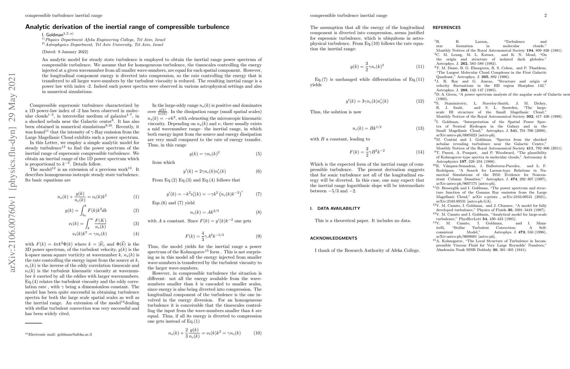 This paper derives an analytic model for the inertial range power spectrum in compressible turbulence, showing that the energy transfer rate is reduced by compression, resulting in a power law with an index of -2, consistent with observations in astrophysics and numerical simulations.