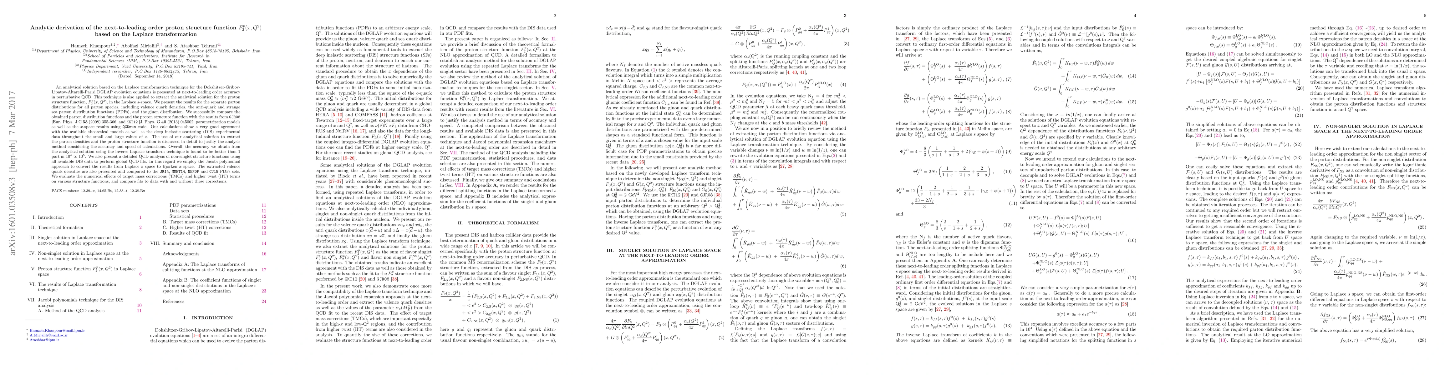 An analytical solution based on the Laplace transformation technique for the DGLAP evolution equations is presented at next-to-leading order accuracy in perturbative QCD. This technique is also applied to extract the analytical solution for the proton structure function, $F_2^p(x, Q^2)$, in the Laplace $s$-space. We present the results for the separate parton distributions for all parton species, including valence quark densities, the anti-quark and strange sea parton distribution functions (PDFs), and the gluon distribution. We successfully compare the obtained parton distribution functions and the proton structure function with the results from {\tt GJR08} and {\tt KKT12} parametrization models as well as the $x$-space results using {\tt QCDnum} code. Our calculations show a very good agreement with the available theoretical models as well as the deep inelastic scattering (DIS) experimental data throughout the small and large values of $x$. The use of our analytical solution to extract the parton densities and the proton structure function is discussed in detail to justify the analysis method considering the accuracy and speed of calculations. Overall, the accuracy we obtain from the analytical solution using the inverse Laplace transform technique is found to be better than 1 part in 10$^{4}$ to 10$^{5}$. We also present a detailed QCD analysis of non-singlet structure functions using all available DIS data to perform global QCD fits. In this regard we employ the Jacobi polynomial approach to convert the results from Laplace $s$ space to Bjorken $x$ space. The extracted valence quark densities are also presented and compared to the {\tt JR14}, {\tt MMHT14}, {\tt NNPDF} and {\tt CJ15} PDFs sets. We evaluate the numerical effects of target mass corrections (TMCs) and higher twist (HT) terms on various structure functions, and compare fits to data with and without these corrections.