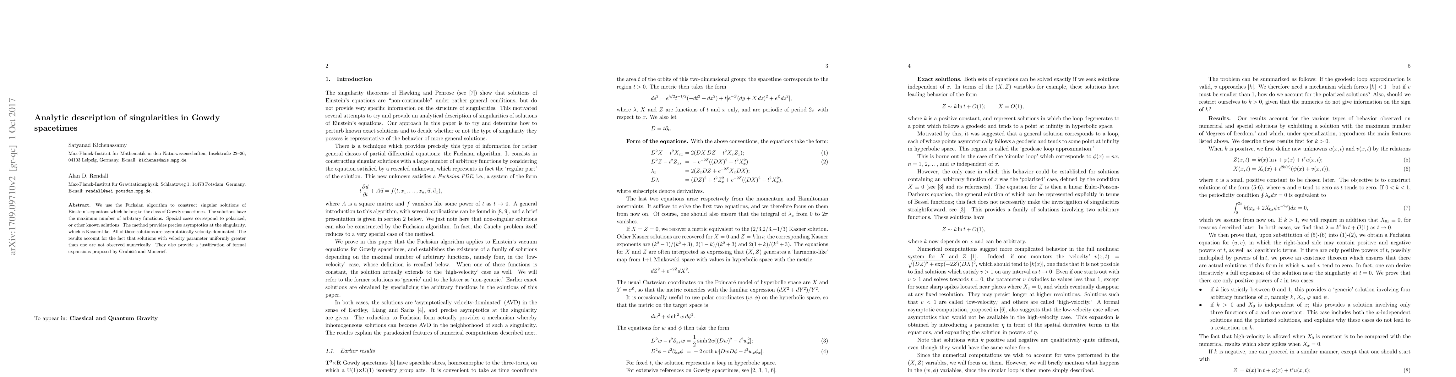 We use Fuchsian Reduction to construct singular solutions of Einstein's equations which belong to the class of Gowdy spacetimes. The solutions have the maximum number of arbitrary functions. Special cases correspond to polarized, or other known solutions. The method provides precise asymptotics at the singularity, which is Kasner-like. All of these solutions are asymptotically velocity-dominated. The results account for the fact that solutions with velocity parameter uniformly greater than one are not observed numerically. They also provide a justification of formal expansions proposed by Grubi\v{s}i\'c and Moncrief.