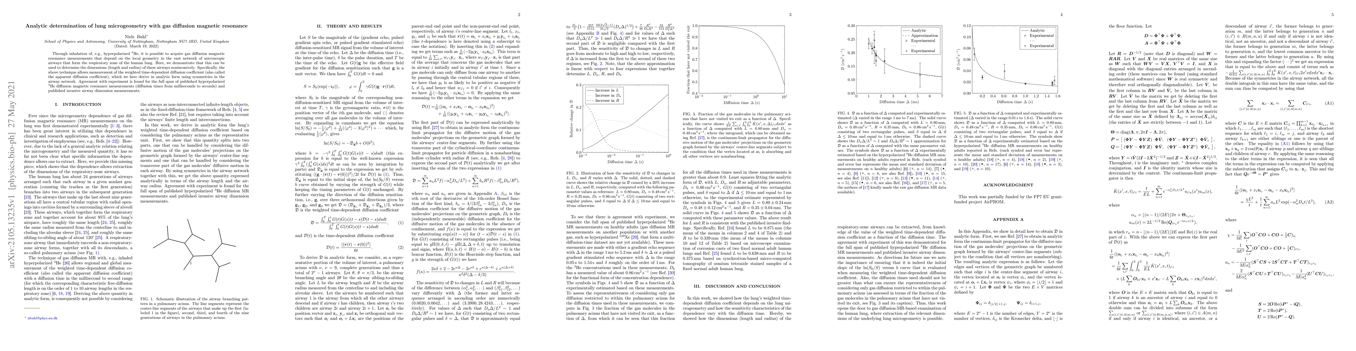 This paper presents an analytic method to determine the microgeometry of lung airways using gas diffusion magnetic resonance, specifically by measuring the apparent diffusion coefficient of hyperpolarized $^3$He. The technique provides non-invasive dimensions of airway length and radius, validated against both experimental and invasive measurements.
