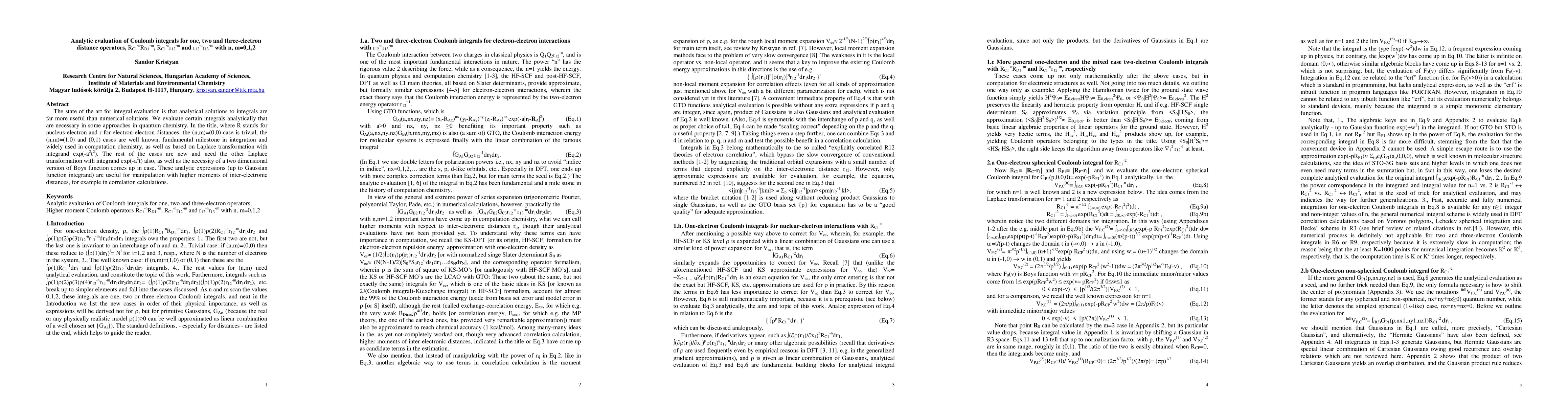 Researchers analytically evaluated a set of Coulomb integrals necessary in quantum chemistry, providing new expressions for calculating inter-electronic distances, which will aid in correlation calculations.