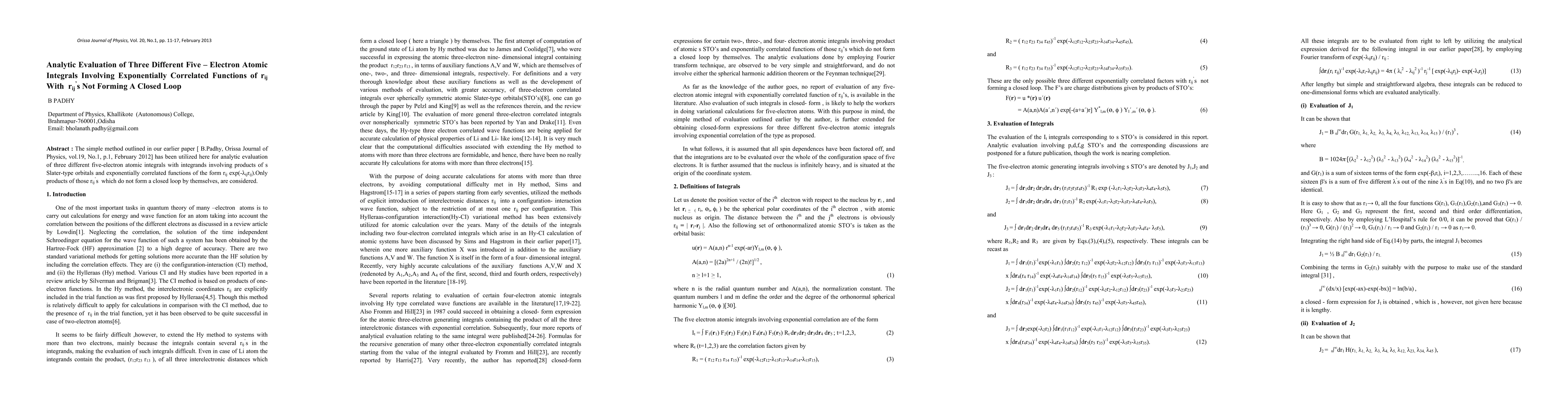 This paper evaluates three five-electron atomic integrals using a method from a prior work, focusing on integrands involving products of s Slater-type orbitals and exponentially correlated functions of $r_{ij}$ that do not form closed loops. The approach provides analytic solutions for these integrals.