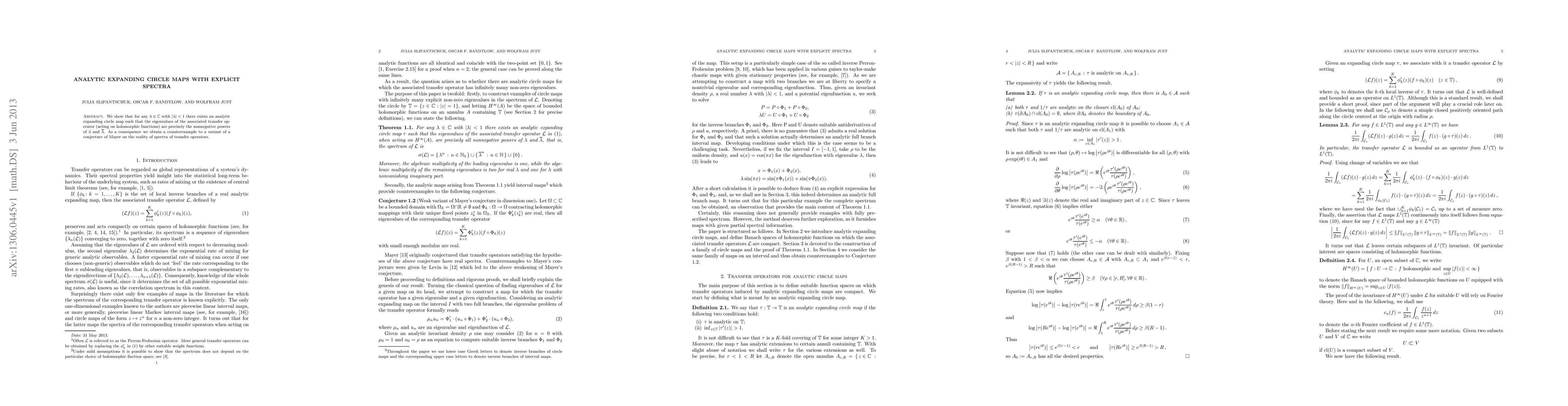 We show that for any $\lambda \in \mathbb{C}$ with $|\lambda|<1$ there exists an analytic expanding circle map such that the eigenvalues of the associated transfer operator (acting on holomorphic functions) are precisely the nonnegative powers of $\lambda$ and $\bar{\lambda}$. As a consequence we obtain a counterexample to a variant of a conjecture of Mayer on the reality of spectra of transfer operators.
