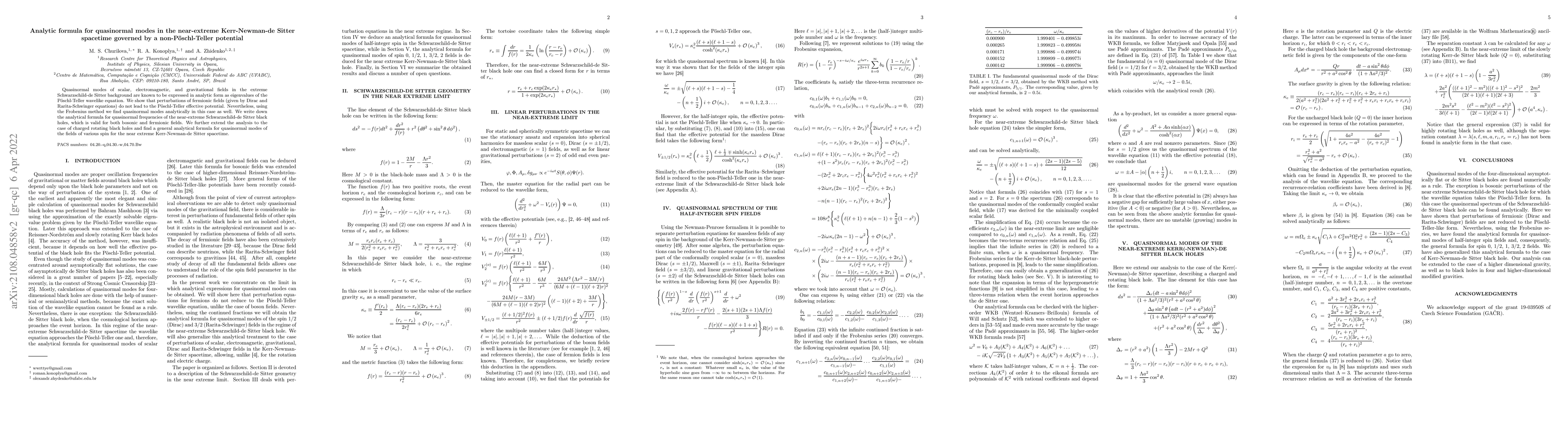 This paper derives an analytic formula for quasinormal modes in near-extreme Kerr-Newman-de Sitter spacetimes, extending the P\"oschl-Teller approach to fermionic fields using the Frobenius method. The formula applies to both bosonic and fermionic fields, including charged rotating black holes.
