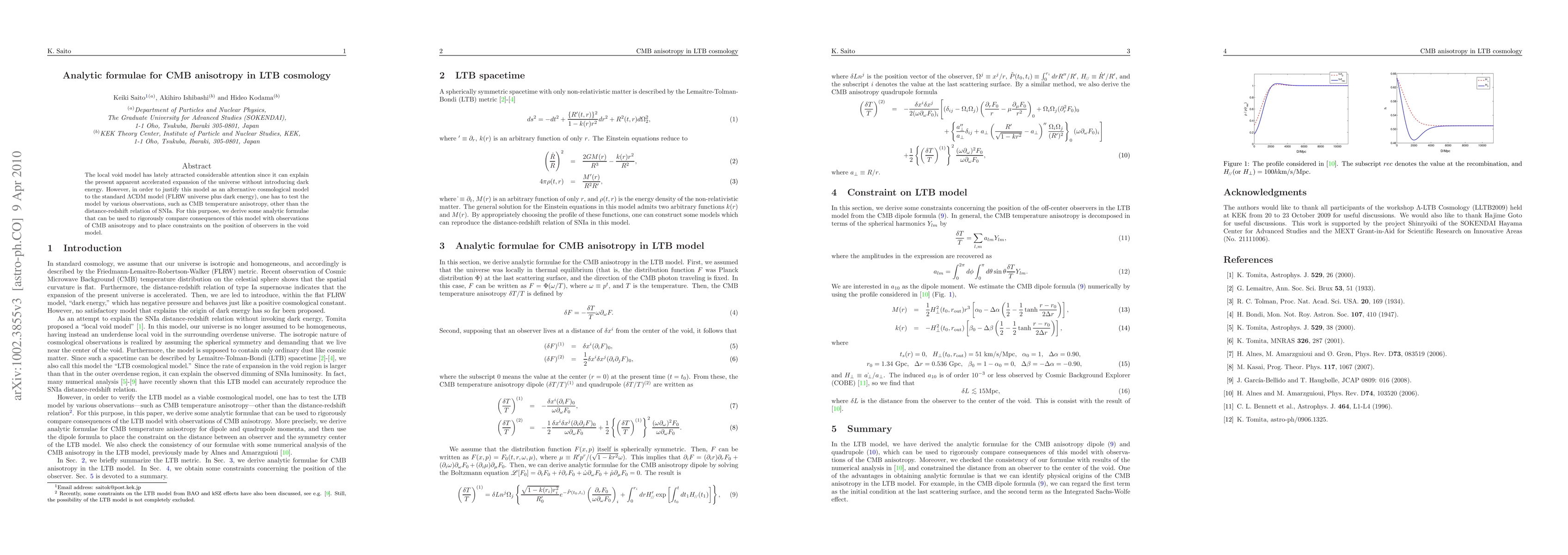 The local void model has lately attracted considerable attention since it can explain the present apparent accelerated expansion of the universe without introducing dark energy. However, in order to justify this model as an alternative cosmological model to the standard $\Lambda$CDM model (FLRW universe plus dark energy), one has to test the model by various observations, such as CMB temperature anisotropy, other than the distance-redshift relation of SNIa. For this purpose, we derive some analytic formulae that can be used to rigorously compare consequences of this model with observations of CMB anisotropy and to place constraints on the position of observers in the void model.