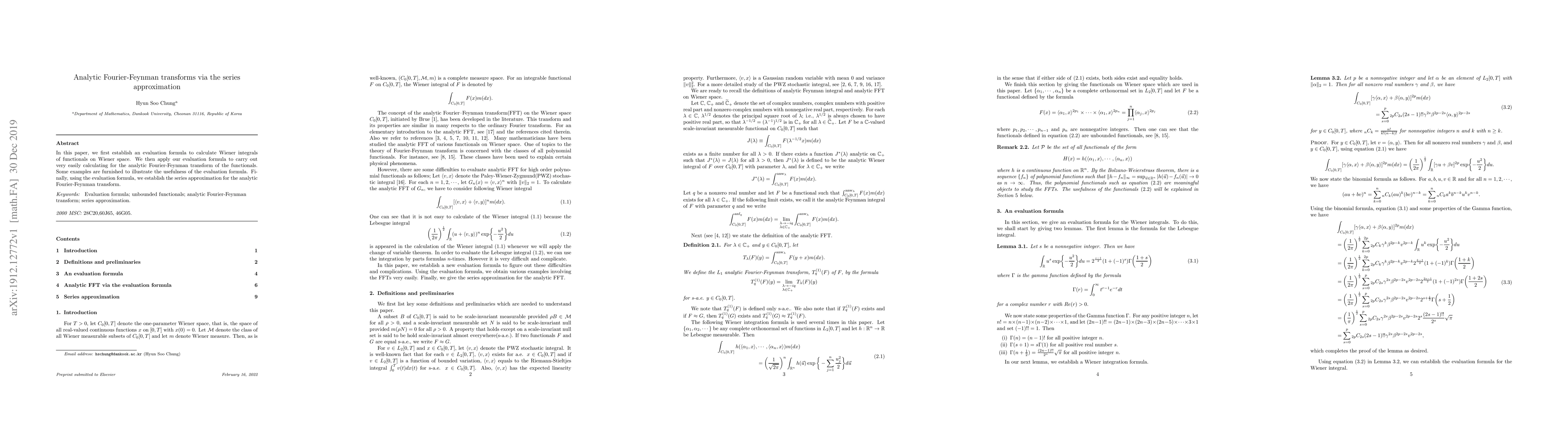 This paper develops an evaluation formula for Wiener integrals and applies it to simplify the calculation of analytic Fourier-Feynman transforms. It also provides examples to demonstrate the formula's utility and establishes a series approximation for these transforms.