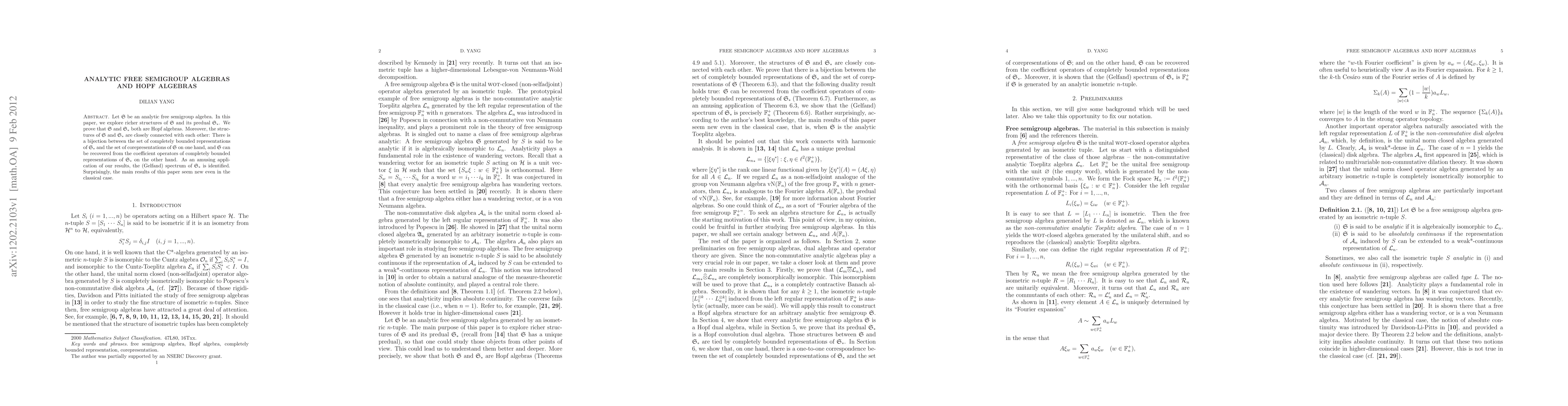 This paper proves that analytic free semigroup algebras are Hopf algebras with a close connection between their structures and those of their preduals, leading to new results in the field.