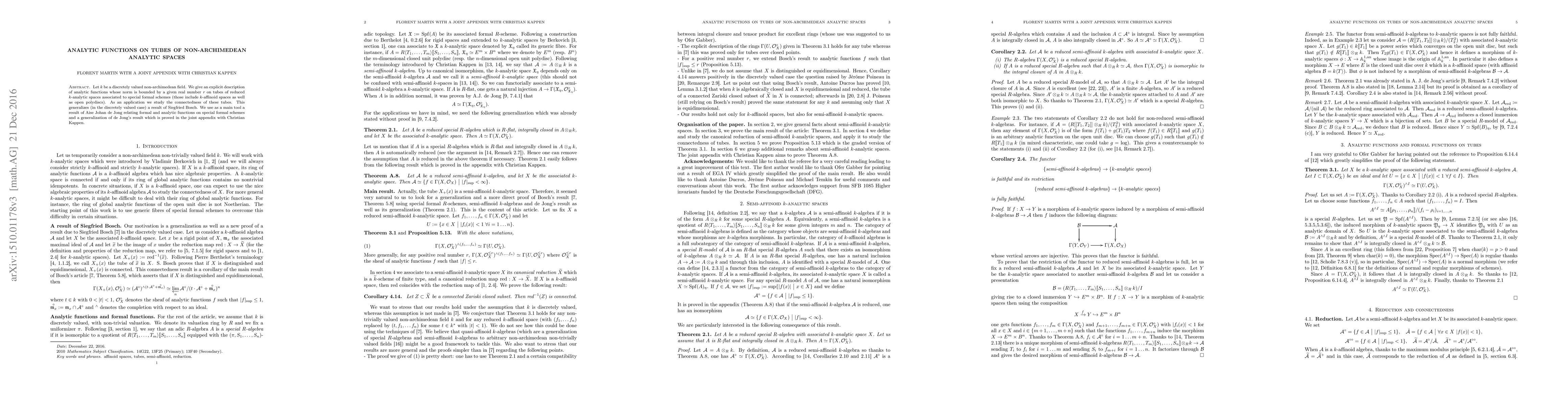 Let $k$ be a discretely valued non-Archimedean field. We give an explicit description of analytic functions whose norm is bounded by a given real number $r$ on tubes of reduced $k$-analytic spaces associated to special formal schemes (those include $k$-affinoid spaces as well as open polydiscs). As an application we study the connectedness of these tubes. This generalizes (in the discretely valued case) a result of Siegfried Bosch. We use as a main tool a result of A.J. de Jong relating formal and analytic functions on special formal schemes and a generalization of de Jong's result which is proved in the joint appendix with Christian Kappen.