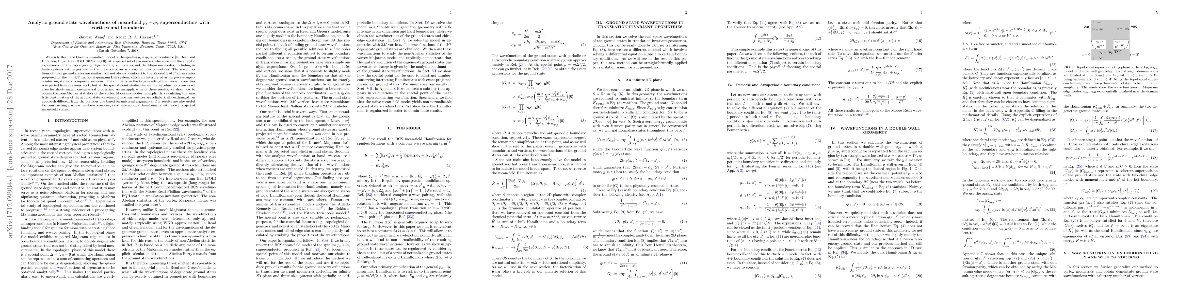 This paper derives analytic expressions for the ground state wavefunctions of $p_x + ip_y$ superconductors in the Read-Green mean-field model, including effects of vortices and boundaries. It reveals the non-Abelian statistics of vortex Majorana modes through explicit calculations, providing a novel approach to understanding these topological properties.