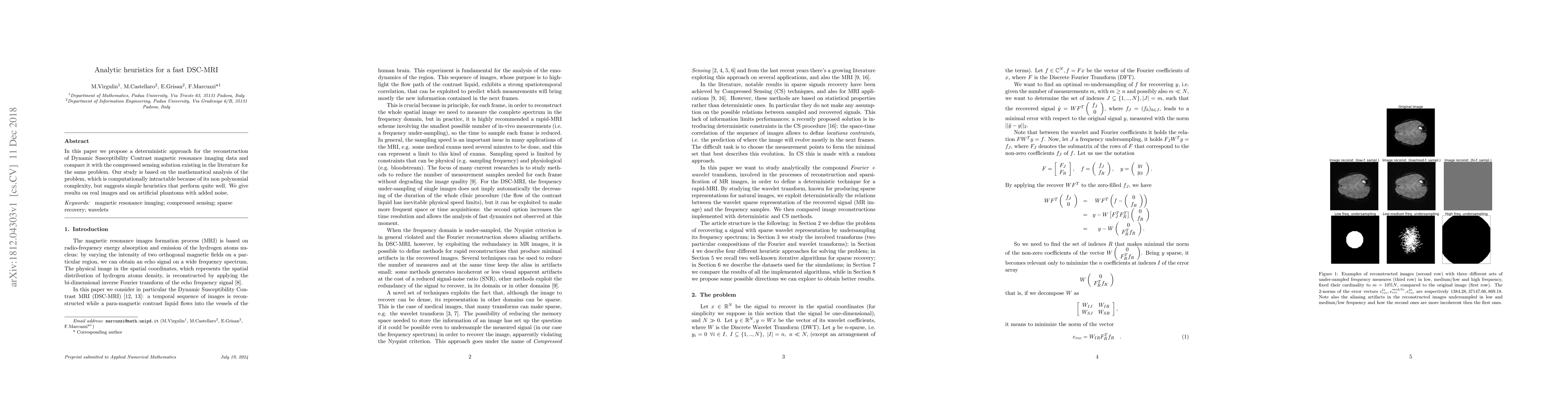 Researchers developed a fast method for reconstructing Dynamic Susceptibility Contrast MRI data using simple heuristics that outperform existing compressed sensing solutions in real images and artificial phantoms with added noise.