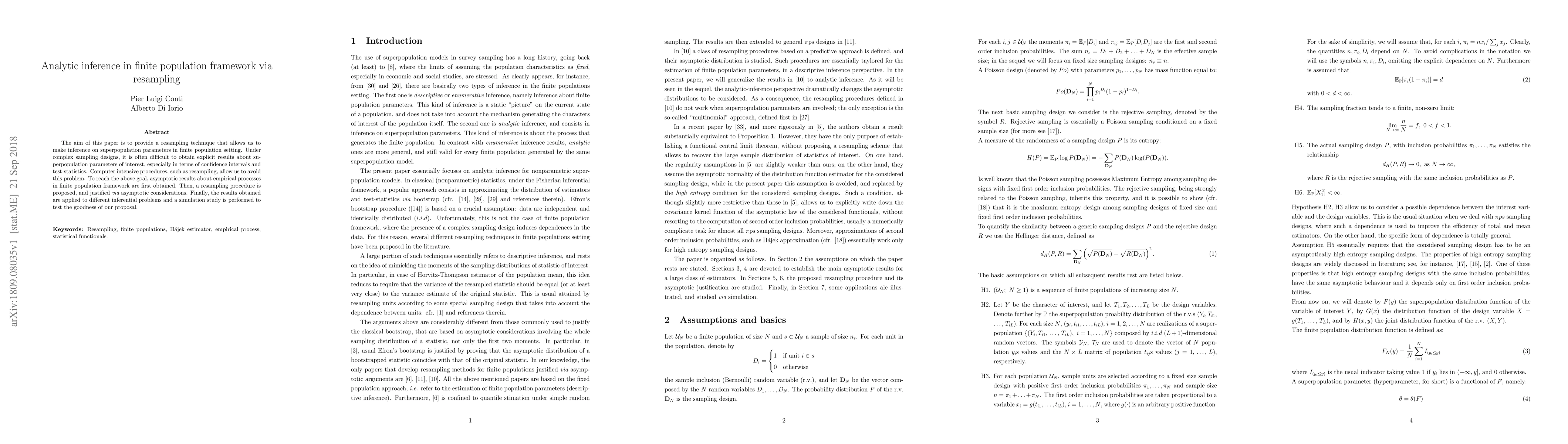 This paper proposes a resampling technique to make inference on superpopulation parameters in finite population settings, providing an alternative to complex sampling designs.