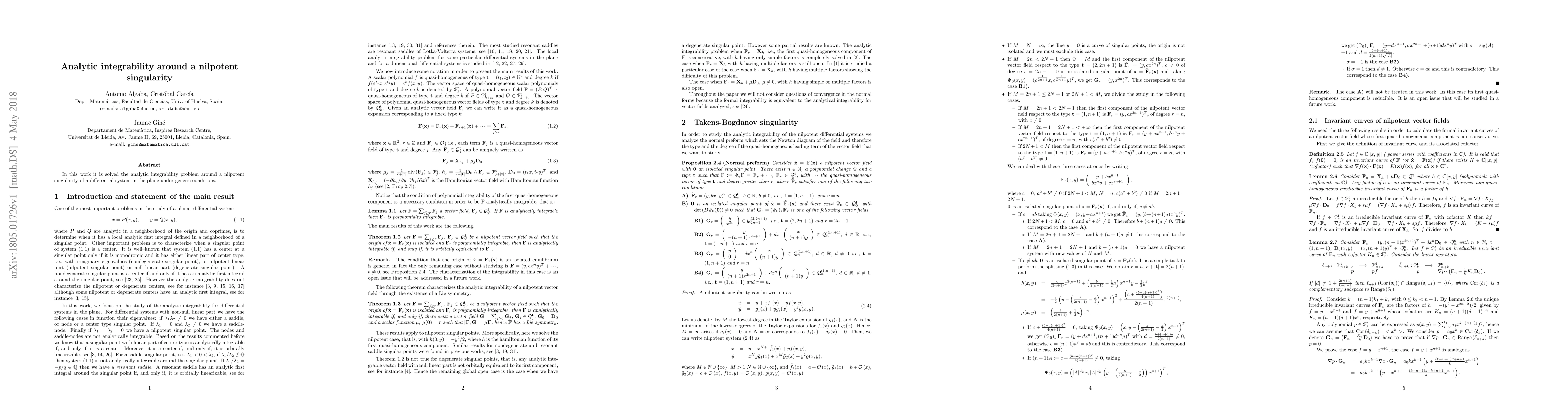 Researchers solved the analytic integrability problem for differential systems in the plane around nilpotent singularities under generic conditions. They made significant progress in understanding the behavior of such systems.