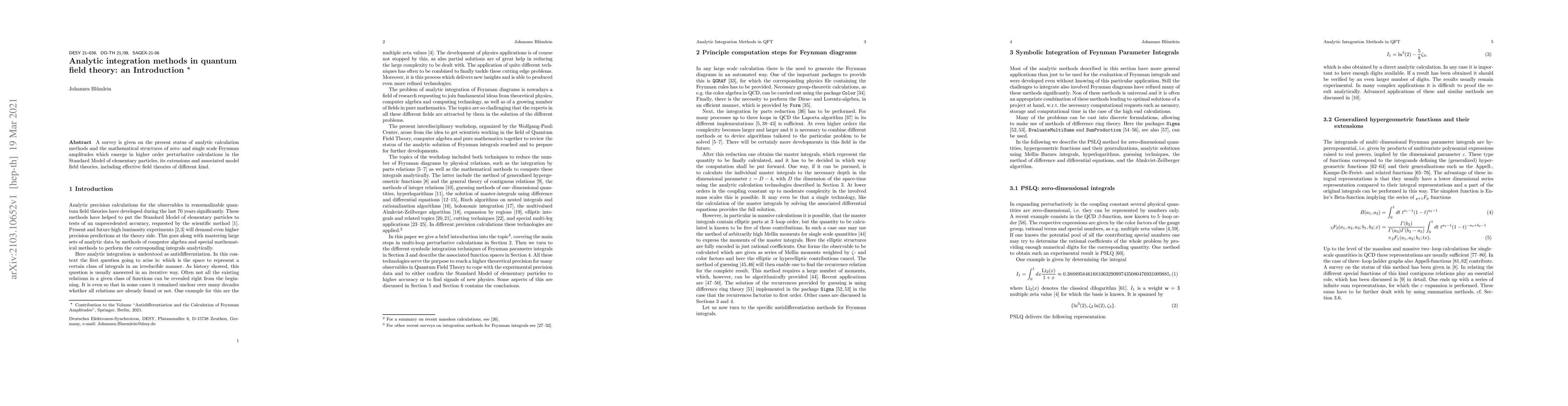 A survey is given on the present status of analytic calculation methods and the mathematical structures of zero- and single scale Feynman amplitudes which emerge in higher order perturbative calculations in the Standard Model of elementary particles, its extensions and associated model field theories, including effective field theories of different kind.