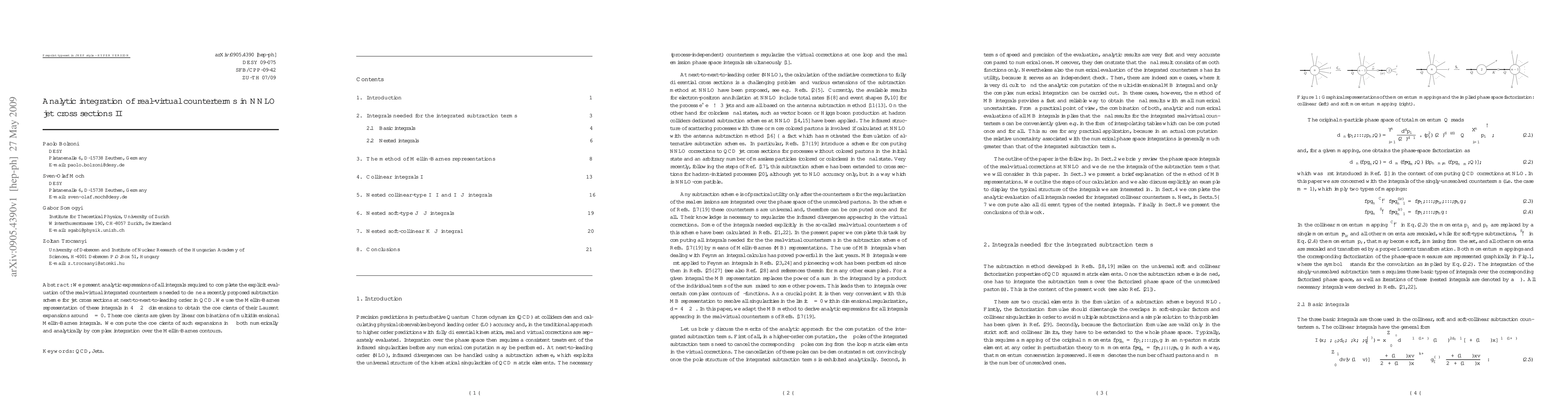 We present analytic expressions of all integrals required to complete the explicit evaluation of the real-virtual integrated counterterms needed to define a recently proposed subtraction scheme for jet cross sections at next-to-next-to-leading order in QCD. We use the Mellin-Barnes representation of these integrals in $4-2\epsilon$ dimensions to obtain the coefficients of their Laurent expansions around $\epsilon=0$. These coefficients are given by linear combinations of multidimensional Mellin-Barnes integrals. We compute the coefficients of such expansions in $\epsilon$ both numerically and analytically by complex integration over the Mellin-Barnes contours.