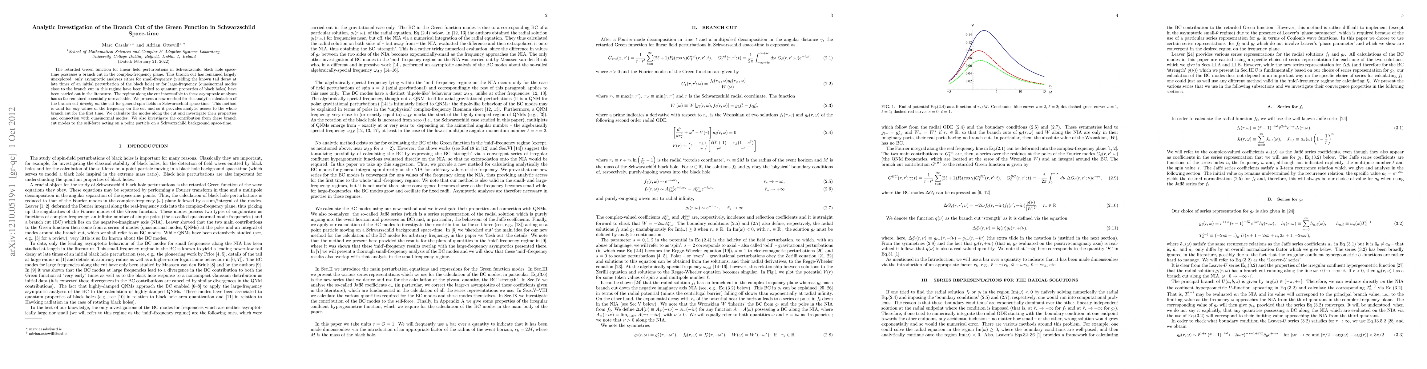 This paper develops a novel analytical method to calculate the branch cut of the retarded Green function in Schwarzschild space-time, providing comprehensive access to the entire cut for any frequency. It investigates the properties of modes along the cut and their relation to quasinormal modes, as well as their contribution to the self-force acting on a point particle.