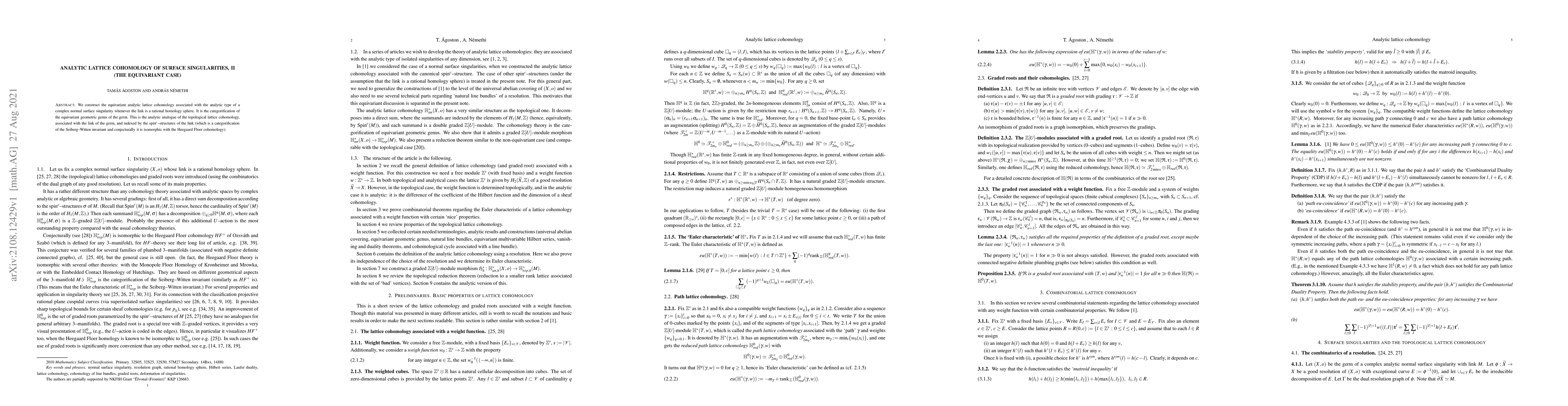 Researchers develop a method to compute equivariant analytic lattice cohomology for complex normal surface singularities with rational homology spheres, providing a categorification of the equivariant geometric genus.