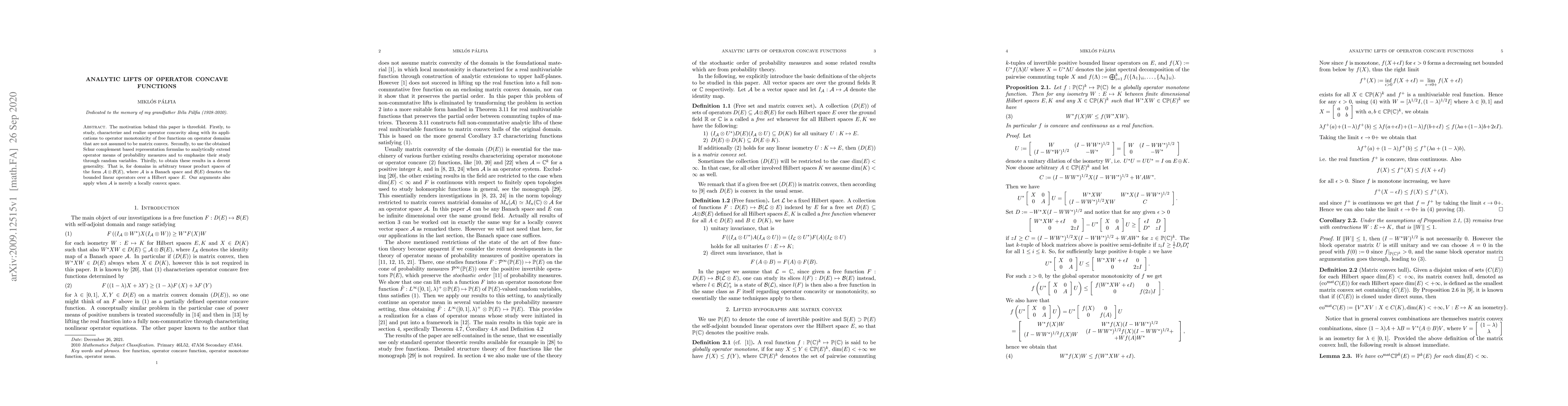 The motivation behind this paper is threefold. Firstly, to study, characterize and realize operator concavity along with its applications to operator monotonicity of free functions on operator domains that are not assumed to be matrix convex. Secondly, to use the obtained Schur complement based representation formulas to analytically extend operator means of probability measures and to emphasize their study through random variables. Thirdly, to obtain these results in a decent generality. That is, for domains in arbitrary tensor product spaces of the form $\mathcal{A}\otimes\mathcal{B}(E)$, where $\mathcal{A}$ is a Banach space and $\mathcal{B}(E)$ denotes the bounded linear operators over a Hilbert space $E$. Our arguments also apply when $\mathcal{A}$ is merely a locally convex space.