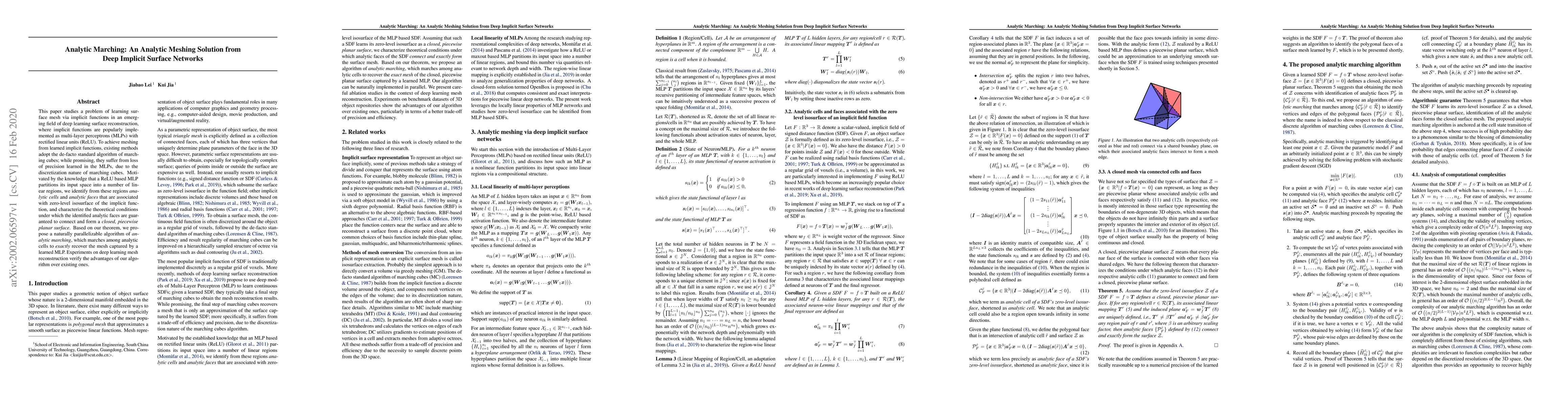 This paper studies a problem of learning surface mesh via implicit functions in an emerging field of deep learning surface reconstruction, where implicit functions are popularly implemented as multi-layer perceptrons (MLPs) with rectified linear units (ReLU). To achieve meshing from learned implicit functions, existing methods adopt the de-facto standard algorithm of marching cubes; while promising, they suffer from loss of precision learned in the MLPs, due to the discretization nature of marching cubes. Motivated by the knowledge that a ReLU based MLP partitions its input space into a number of linear regions, we identify from these regions analytic cells and analytic faces that are associated with zero-level isosurface of the implicit function, and characterize the theoretical conditions under which the identified analytic faces are guaranteed to connect and form a closed, piecewise planar surface. Based on our theorem, we propose a naturally parallelizable algorithm of analytic marching, which marches among analytic cells to exactly recover the mesh captured by a learned MLP. Experiments on deep learning mesh reconstruction verify the advantages of our algorithm over existing ones.