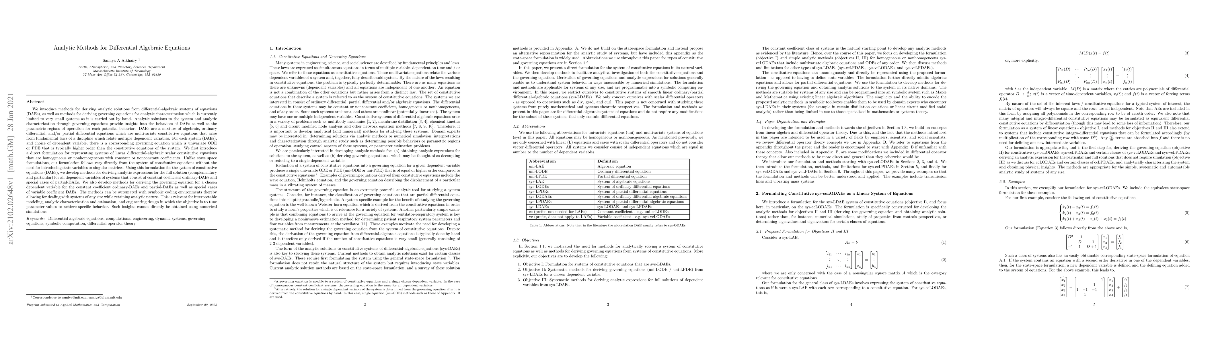 New methods for solving differential-algebraic equations and deriving governing equations provide insights into system behaviors and offer a way to analyze large systems analytically.