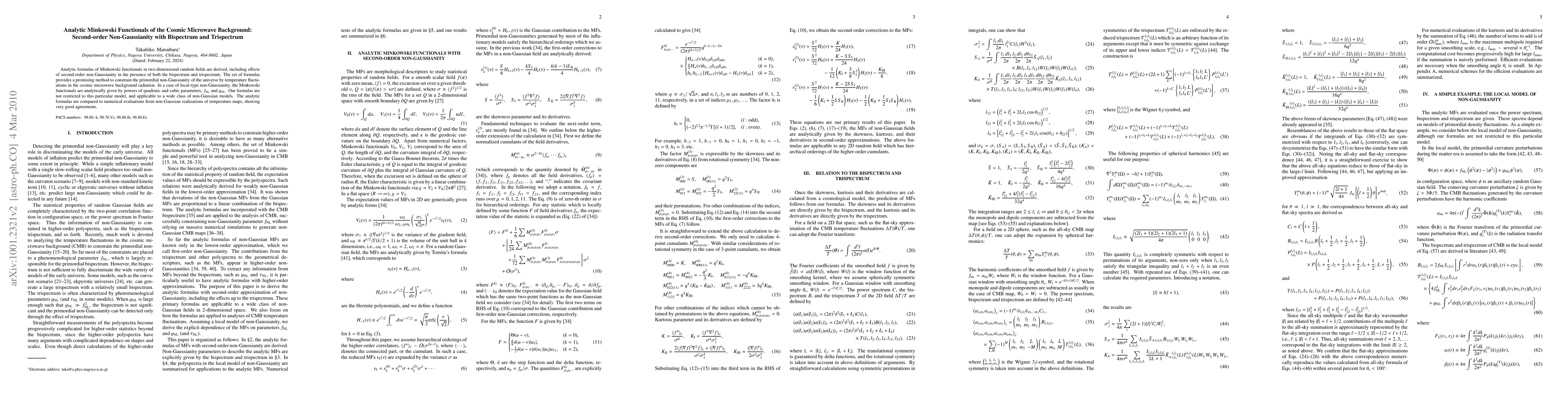 This paper derives analytic Minkowski functionals for two-dimensional random fields, incorporating second-order non-Gaussianity via the bispectrum and trispectrum. These formulas offer a robust method to constrain primordial non-Gaussianity in the cosmic microwave background, applicable to a broad range of non-Gaussian models, and show strong agreement with numerical evaluations.