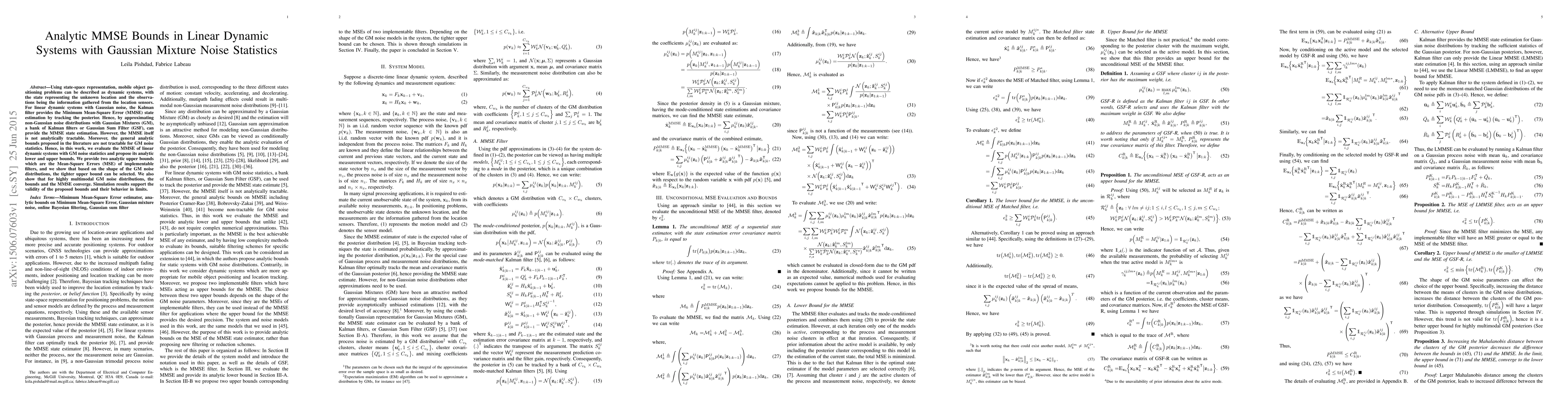 This paper proposes analytic lower and upper bounds for the Minimum Mean-Square Error (MMSE) in linear dynamic systems with Gaussian Mixture noise. It introduces two implementable upper bounds and demonstrates their effectiveness based on the shape of the noise distribution.