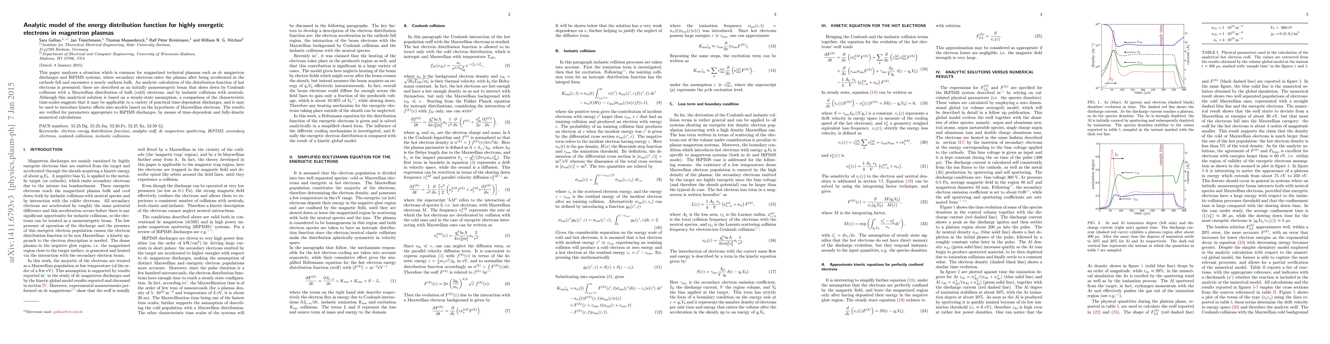 This paper presents an analytic model for the energy distribution function of highly energetic electrons in magnetron plasmas, describing their interaction with a Maxwellian distribution of cold electrons and neutrals. The model, though steady-state, is shown to be applicable to time-dependent discharges and verified through numerical simulations for HiPIMS systems.
