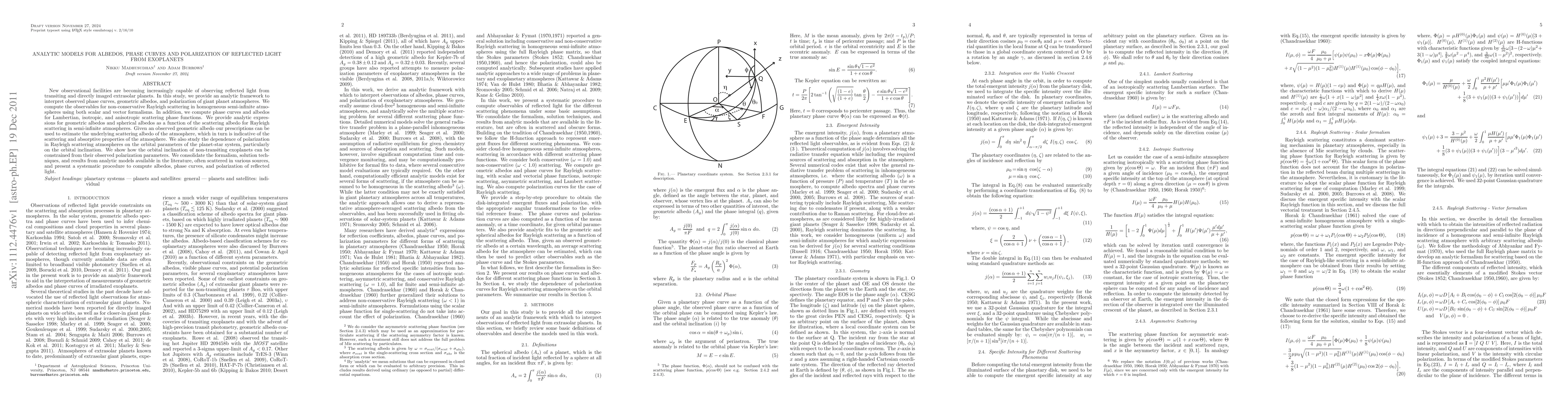 This paper develops an analytic framework for interpreting phase curves, geometric albedos, and polarization of reflected light from exoplanets, focusing on Rayleigh scattering in atmospheres. It consolidates existing models to provide a systematic approach to compute these observables, enabling the estimation of atmospheric scattering properties from observed geometric albedos.