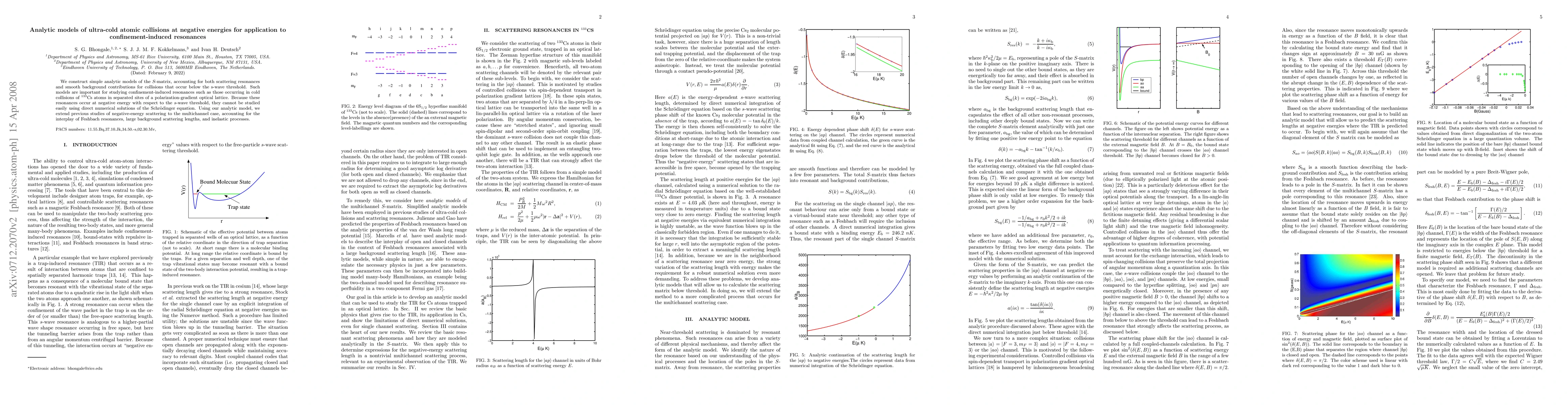 This paper develops simple analytic models of the $S$-matrix to study ultra-cold atomic collisions at negative energies, focusing on confinement-induced resonances in cold collisions of $^{133}$Cs atoms. These models account for scattering resonances and background contributions, extending previous studies to the multichannel case.