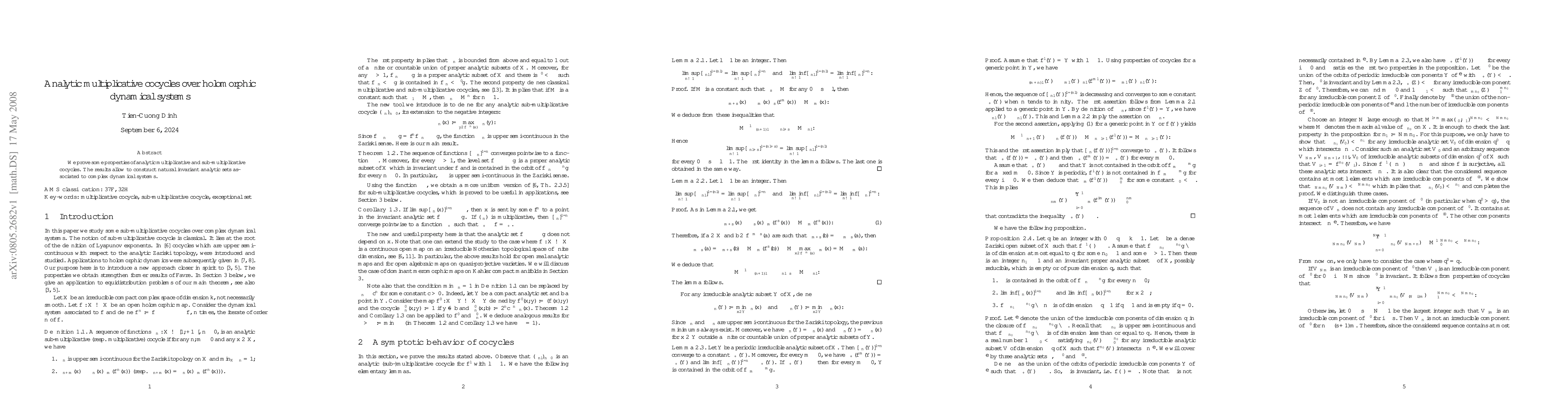 Summary: This paper establishes properties of analytic multiplicative cocycles, enabling the construction of invariant analytic sets linked to complex dynamical systems. The results provide a deeper understanding of the structure of these systems.