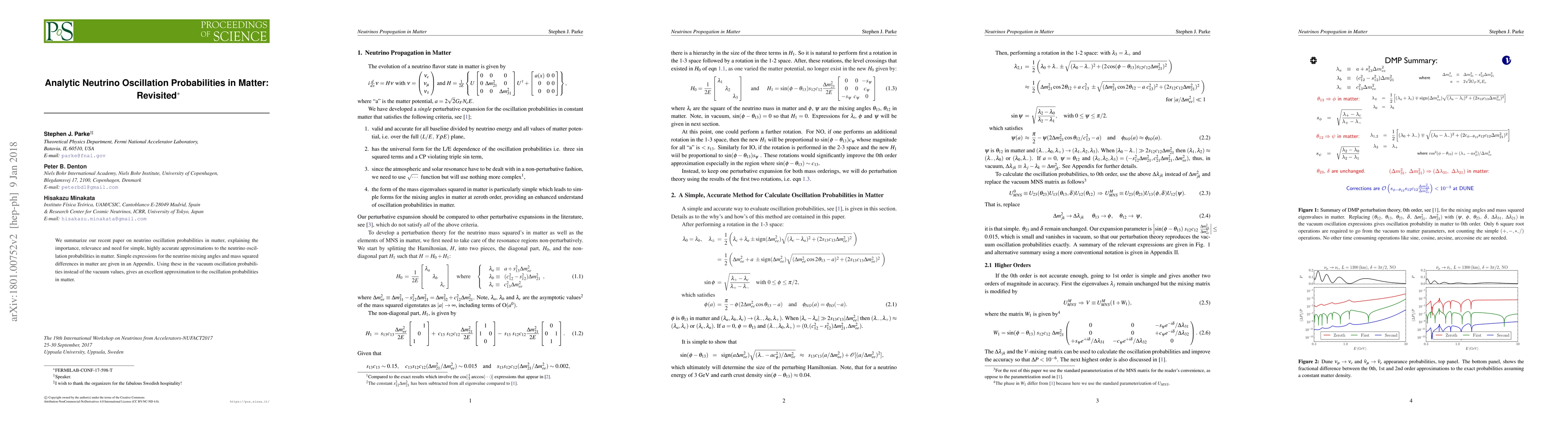 We summarize our recent paper on neutrino oscillation probabilities in matter, explaining the importance, relevance and need for simple, highly accurate approximations to the neutrino oscillation probabilities in matter. Simple expressions for the neutrino mixing angles and mass squared differences in matter are given in an Appendix. Using these in the vacuum oscillation probabilities instead of the vacuum values, gives an excellent approximation to the oscillation probabilities in matter.