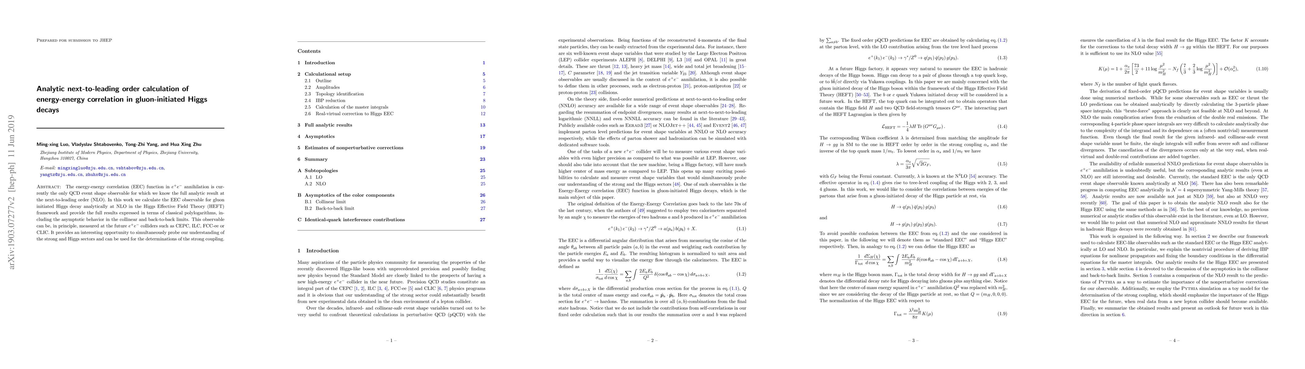 Researchers calculated the energy-energy correlation observable in gluon-initiated Higgs decays at next-to-leading order using classical polylogarithms, providing a tool to probe strong and Higgs sectors.