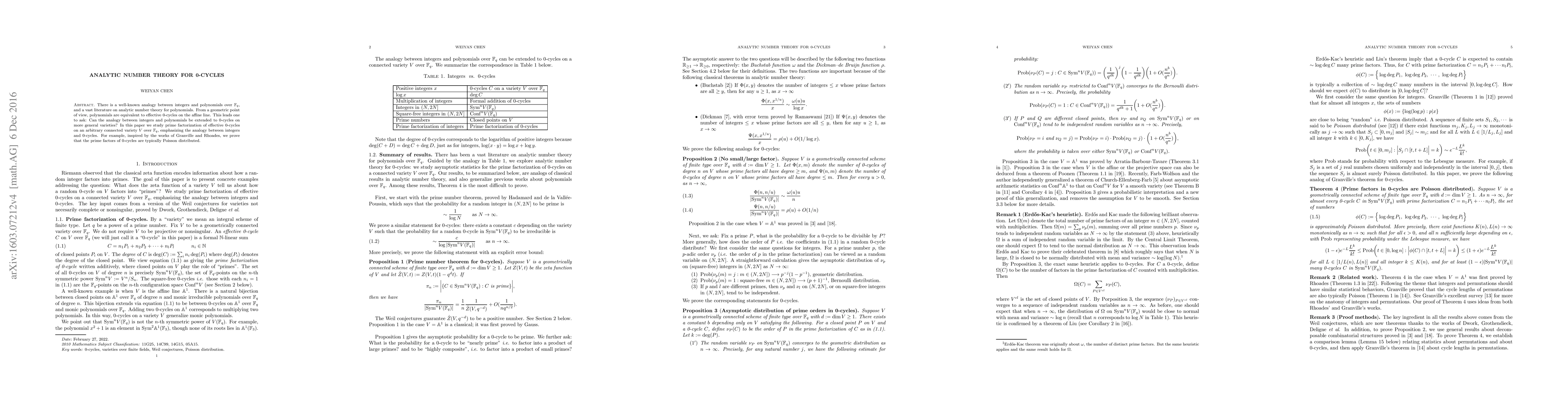 There is a well-known analogy between integers and polynomials over $F_q$, and a vast literature on analytic number theory for polynomials. From a geometric point of view, polynomials are equivalent to effective 0-cycles on the affine line. This leads one to ask: Can the analogy between integers and polynomials be extended to 0-cycles on more general varieties? In this paper we study prime factorization of effective 0-cycles on an arbitrary connected variety $V$ over $F_q$, emphasizing the analogy between integers and 0-cycles. For example, inspired by the works of Granville and Rhoades, we prove that the prime factors of 0-cycles are typically Poisson distributed.