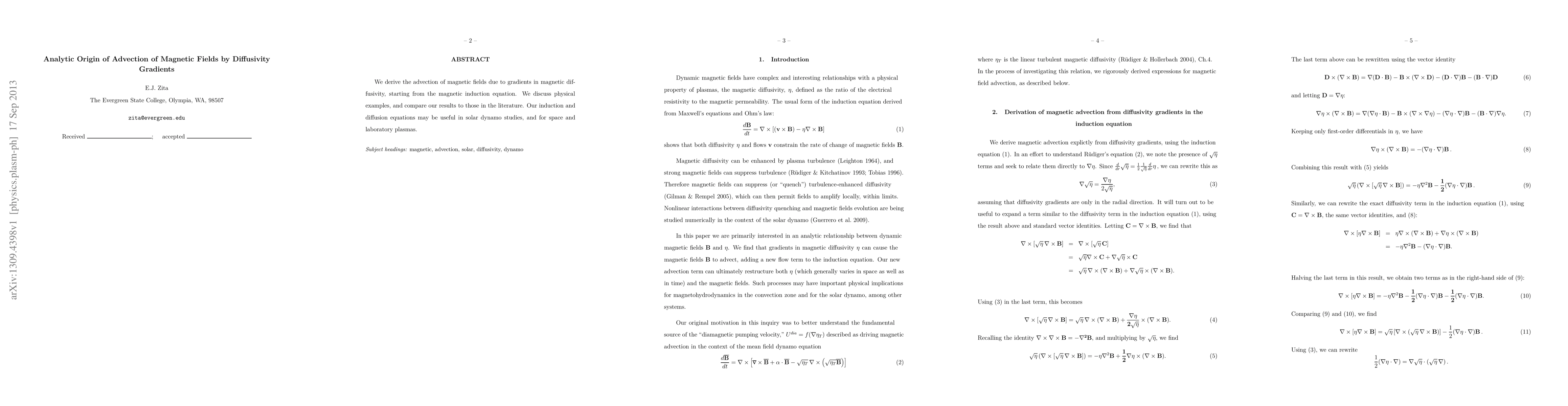 Researchers derive a new mechanism for magnetic field advection caused by gradients in magnetic diffusivity, which could improve understanding of solar dynamos and laboratory plasmas.