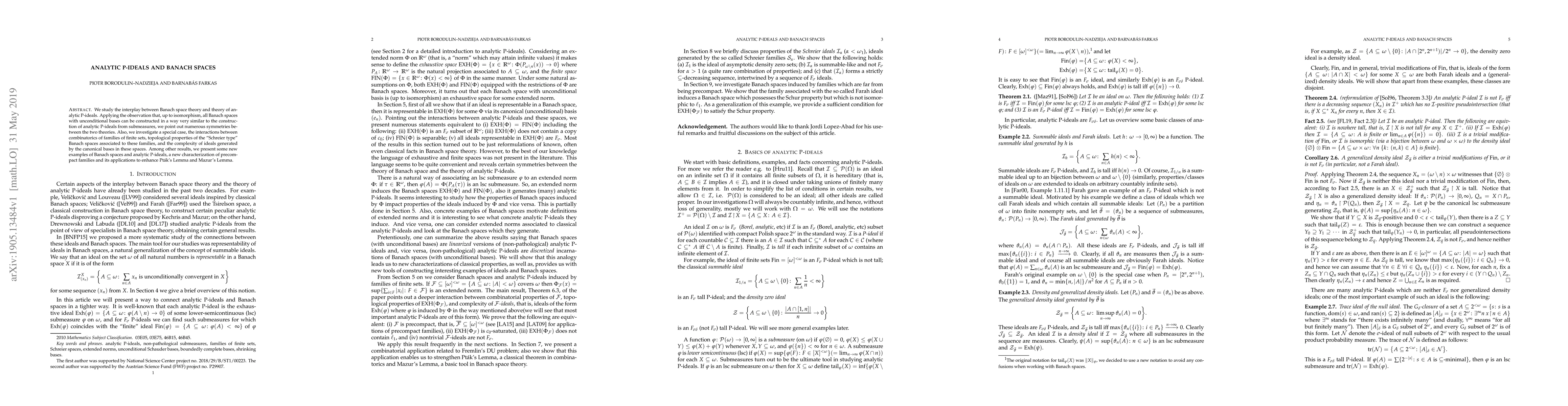 This paper explores the connections between Banach space theory and analytic P-ideals, highlighting similarities in their constructions and investigating specific cases involving combinatorial families, topological properties, and complexity of ideals. It introduces new examples and enhances Pták's and Mazur's Lemmas through a new characterization of precompact families.