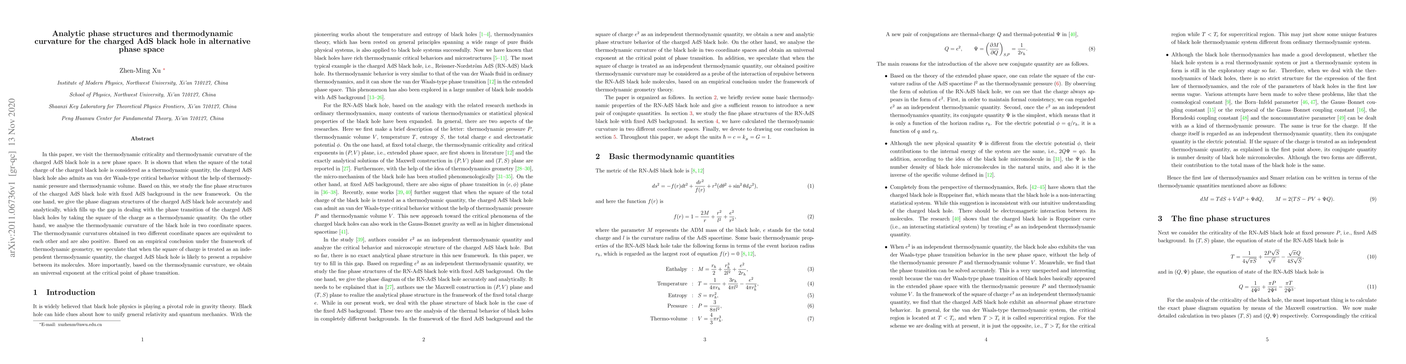 This paper explores the thermodynamic criticality and curvature of charged AdS black holes in an alternative phase space where the square of the total charge is treated as a thermodynamic variable. It reveals van der Waals-type critical behavior and provides an analytical phase diagram, concluding with a universal exponent at the critical point of phase transition.