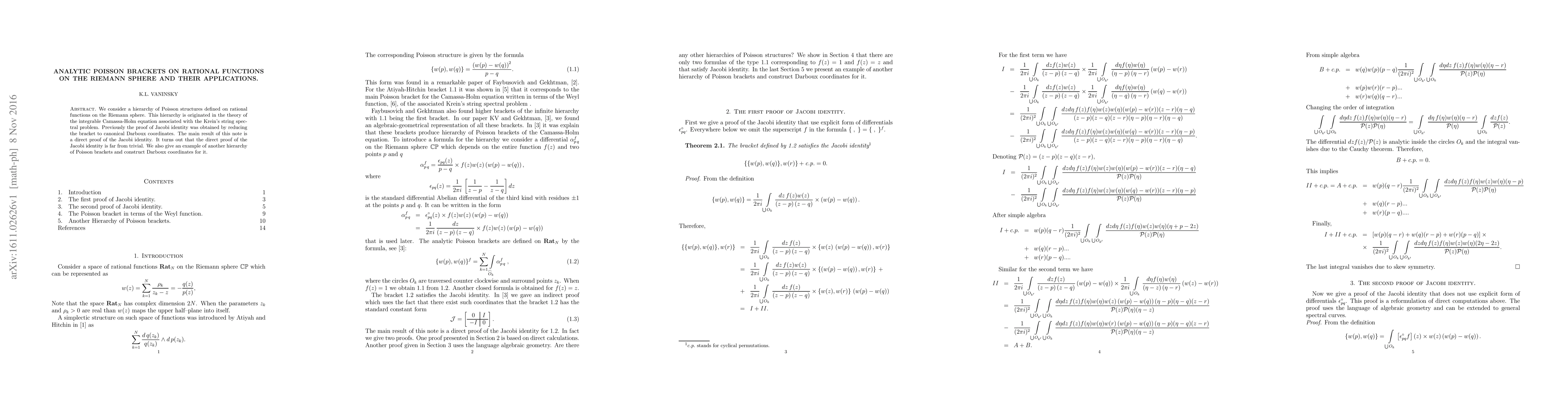 We consider a hierarchy of Poisson structures defined on rational functions on the Riemann sphere. This hierarchy is originated in the theory of the integrable Camassa-Holm equation associated with the Krein's string spectral problem. Previously the proof of Jacobi identity was obtained by reducing the bracket to canonical Darboux coordinates. The main result of this note is a direct proof of the Jacobi identity. It turns out that the direct proof of the Jacobi identity is far from trivial. We also give an example of another hierarchy of Poisson brackets and construct Darboux coordinates for it.