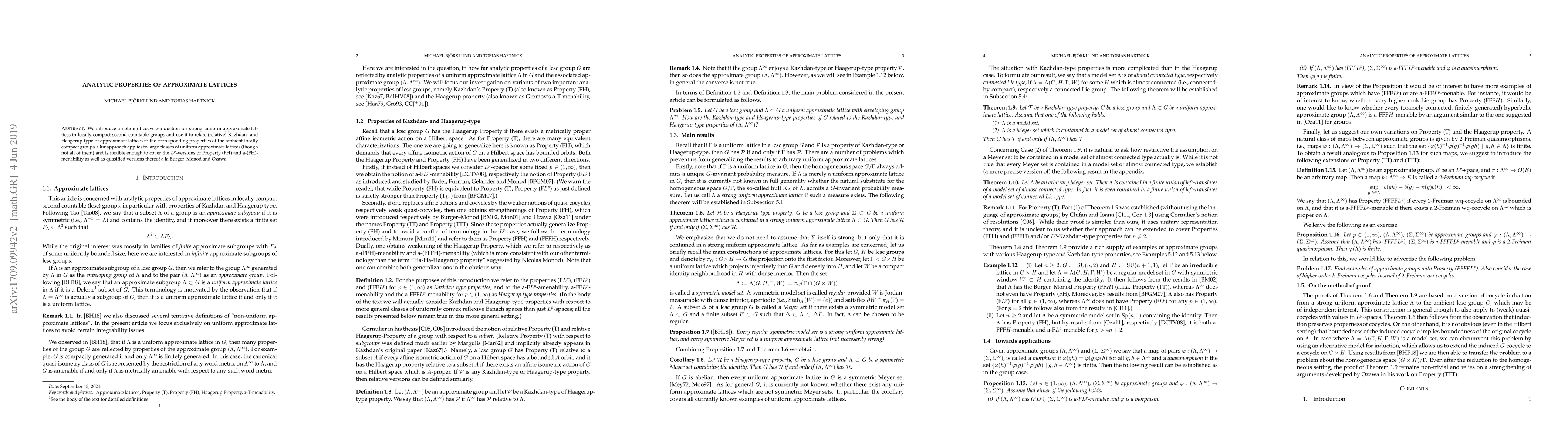 We introduce a notion of cocycle-induction for strong uniform approximate lattices in locally compact second countable groups and use it to relate (relative) Kazhdan- and Haagerup-type of approximate lattices to the corresponding properties of the ambient locally compact groups. Our approach applies to large classes of uniform approximate lattices (though not all of them) and is flexible enough to cover the $L^p$-versions of Property (FH) and a-(FH)-menability as well as quasified versions thereof a la Burger--Monod and Ozawa.