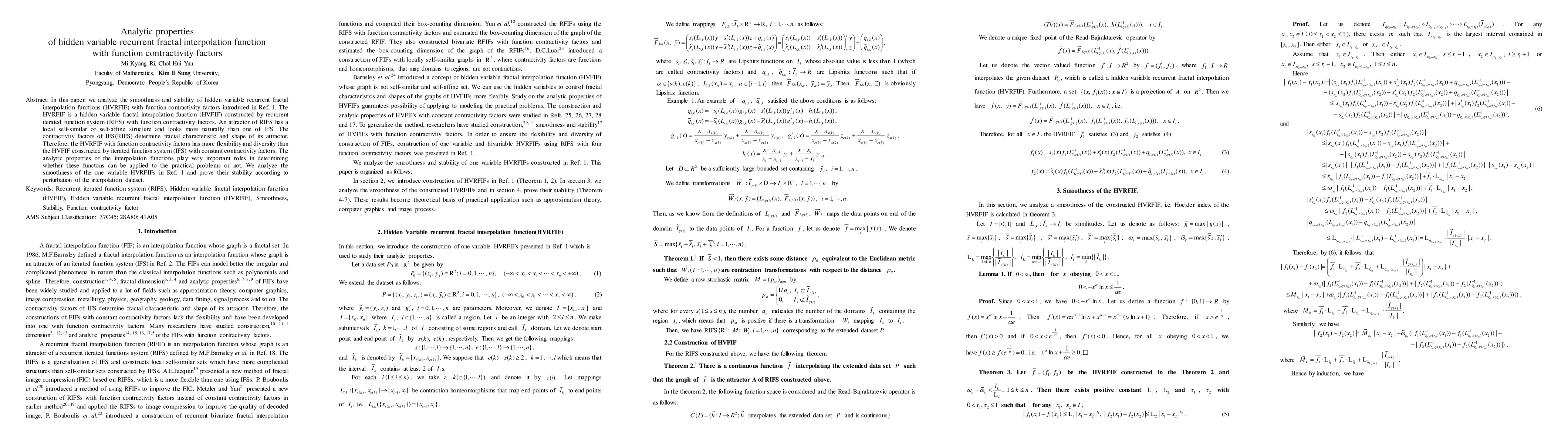 This paper analyzes the smoothness and stability of hidden variable recurrent fractal interpolation functions (HVRFIF) enhanced by function contractivity factors, demonstrating their practical applicability through proven stability under dataset perturbations.