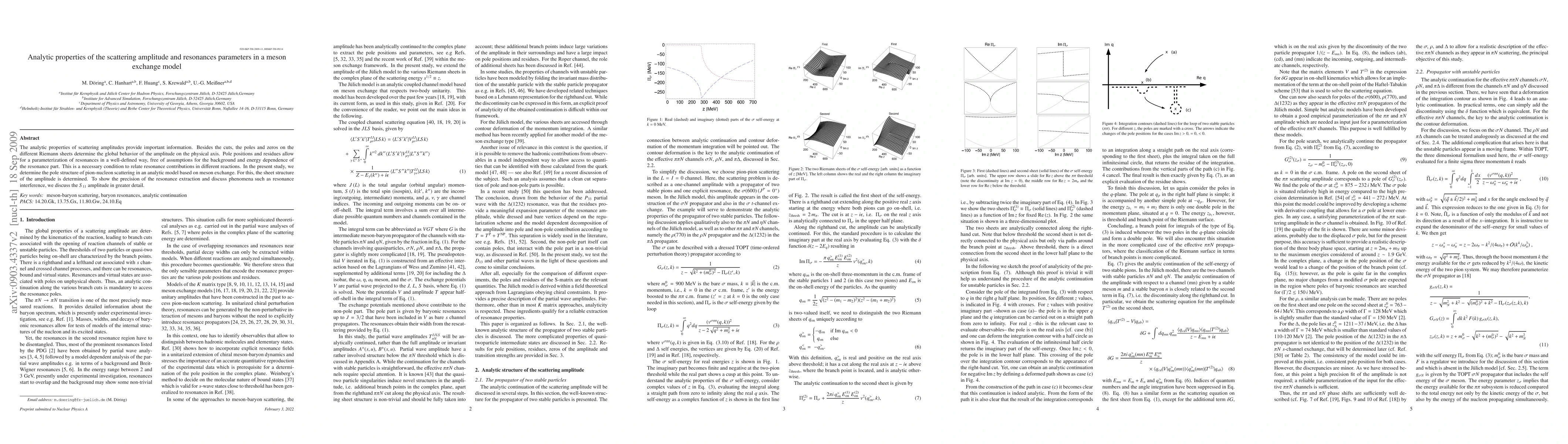 The analytic properties of scattering amplitudes provide important information. Besides the cuts, the poles and zeros on the different Riemann sheets determine the global behavior of the amplitude on the physical axis. Pole positions and residues allow for a parameterization of resonances in a well-defined way, free of assumptions for the background and energy dependence of the resonance part. This is a necessary condition to relate resonance contributions in different reactions. In the present study, we determine the pole structure of pion-nucleon scattering in an analytic model based on meson exchange. For this, the sheet structure of the amplitude is determined. To show the precision of the resonance extraction and discuss phenomena such as resonance interference, we discuss the S11 amplitude in greater detail.