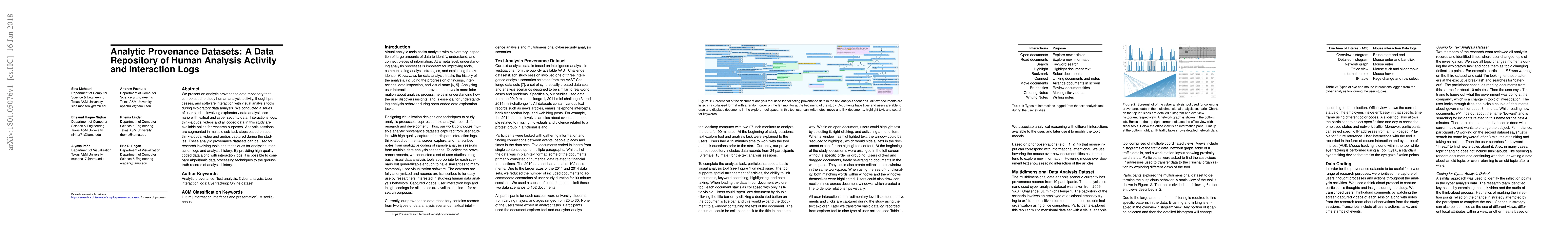 This paper introduces a data repository of analytic provenance capturing human analysis activity, interaction logs, and thought processes during exploratory data analysis. The datasets, derived from user studies involving textual and cybersecurity data, are available for research to improve tools and techniques for analyzing interaction logs and analysis history.