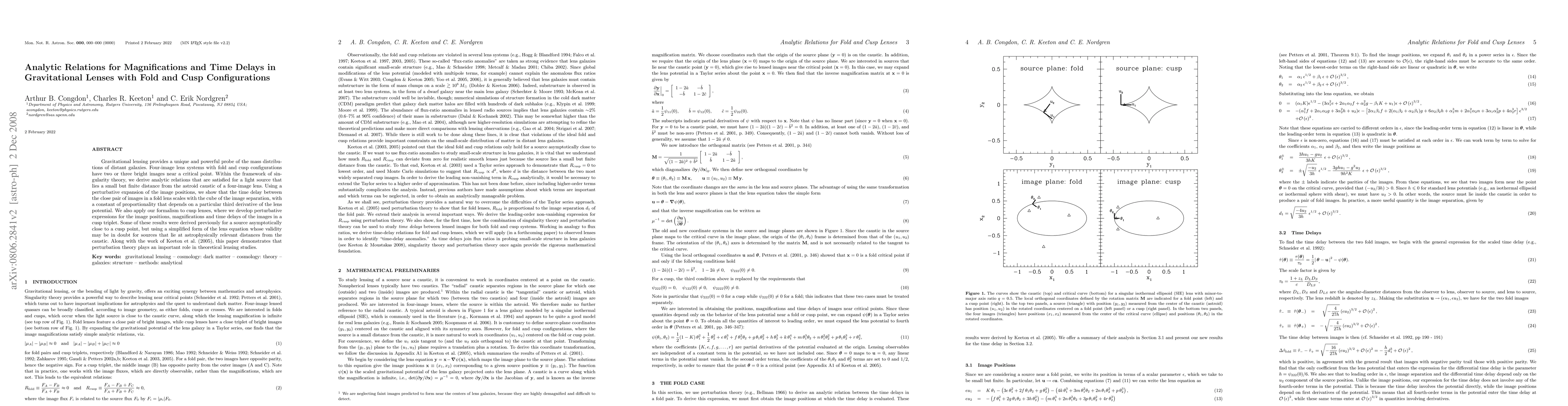 This paper derives analytic relations for magnifications and time delays in gravitational lenses with fold and cusp configurations. It uses perturbative expansions of image positions, finding that time delay in fold lenses scales with the cube of image separation, and provides expressions for image positions, magnifications, and time delays in cusp lenses, validating perturbation theory's role in theoretical lensing studies.