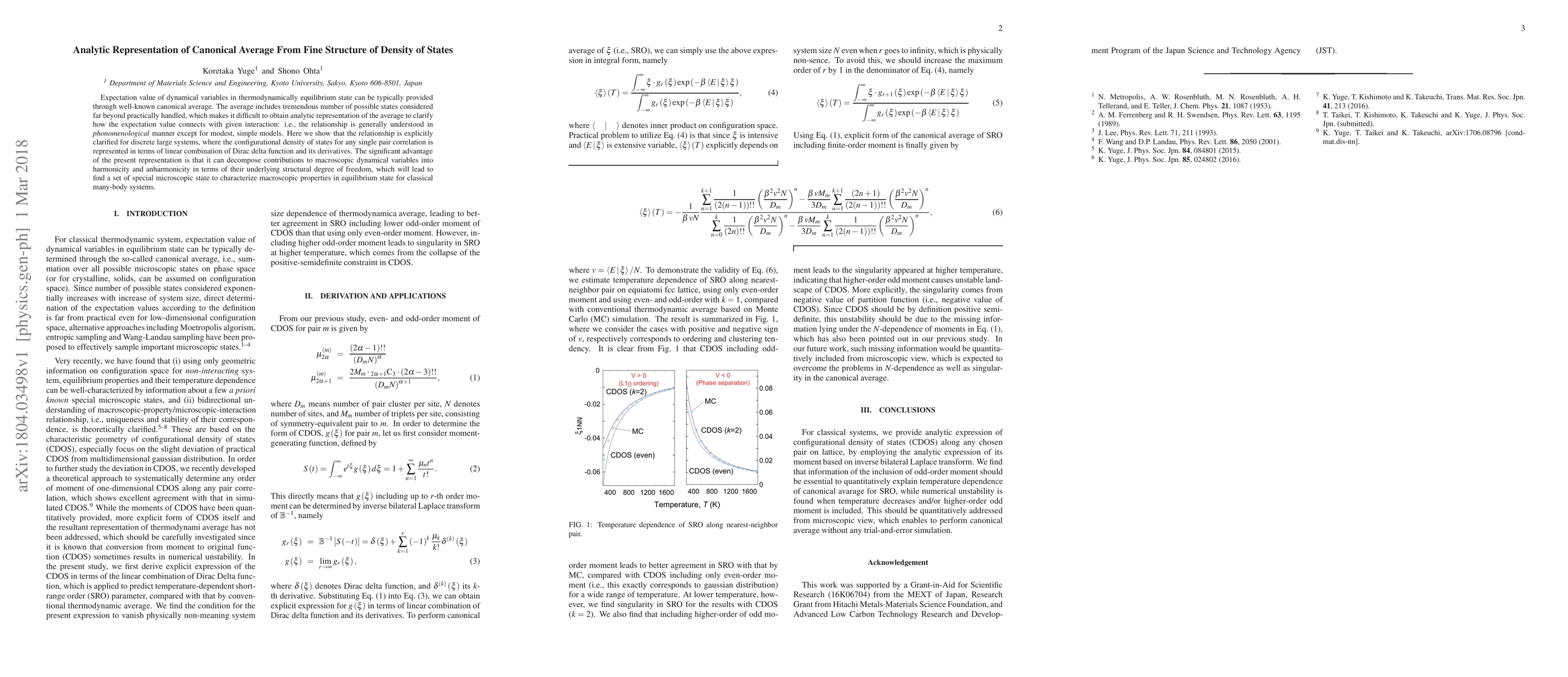 Expectation value of dynamical variables in thermodynamically equilibrium state can be typically provided through well-known canonical average. The average includes tremendous number of possible states considered far beyond practically handled, which makes it difficult to obtain analytic representation of the average to clarify how the expectation value connects with given interaction: i.e., the relationship is generally understood in phonomenological manner except for modest, simple models. Here we show that the relationship is explicitly clarified for discrete large systems, where the configurational density of states for any single pair correlation is represented in terms of linear combination of Dirac delta function and its derivatives. The significant advantage of the present representation is that it can decompose contributions to macroscopic dynamical variables into harmonicity and anharmonicity in terms of their underlying structural degree of freedom, which will lead to find a set of special microscopic state to characterize macroscopic properties in equilibrium state for classical many-body systems.