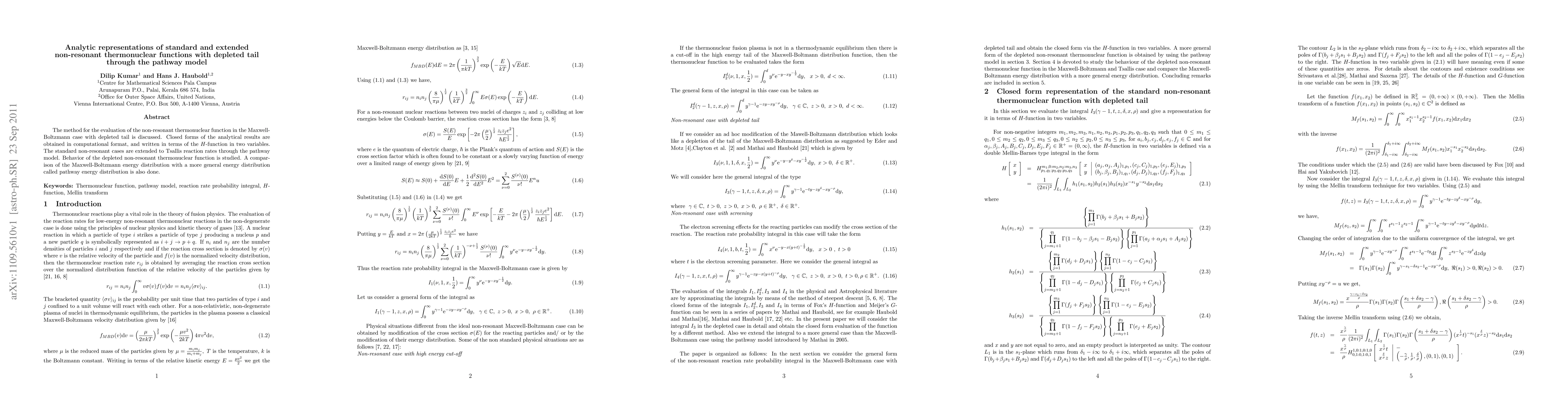 This paper develops analytic representations of non-resonant thermonuclear functions, providing closed-form solutions in terms of H-functions for both standard and extended cases using the pathway model. It also compares the Maxwell-Boltzmann distribution with the pathway energy distribution.