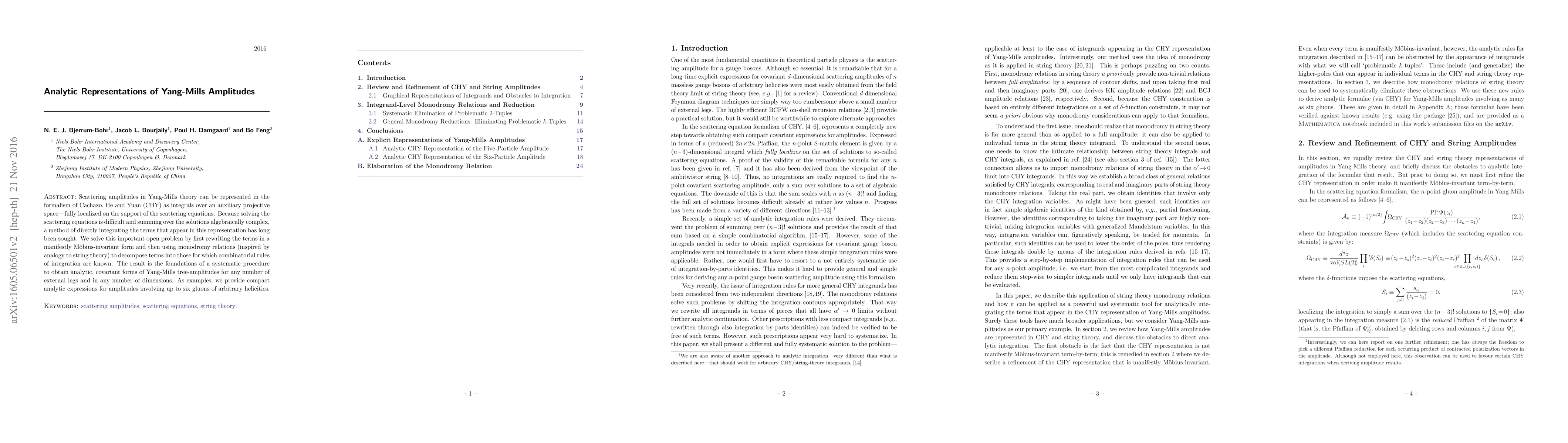 This paper presents a systematic method to derive analytic, covariant forms of Yang-Mills tree-amplitudes using a manifestly Mobius-invariant representation and monodromy relations. It provides compact analytic expressions for amplitudes involving up to six gluons of arbitrary helicities.
