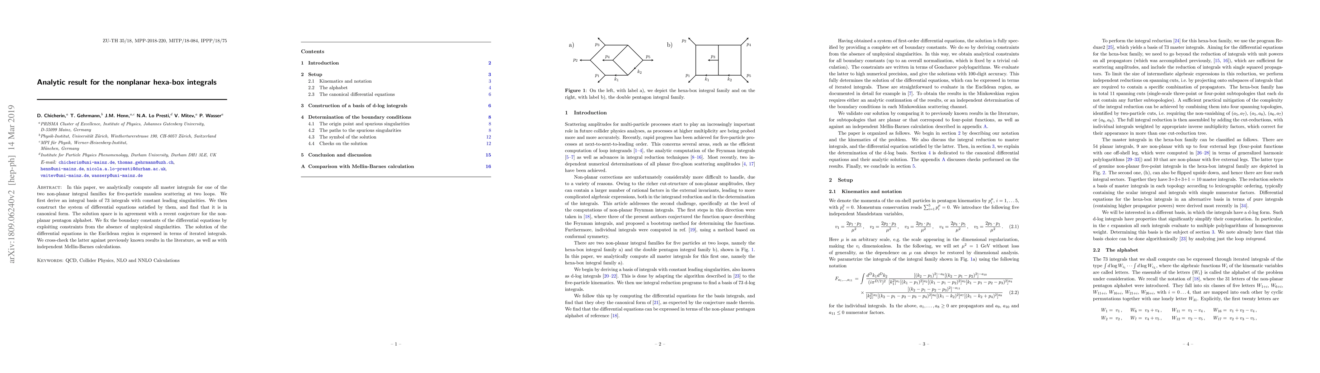 Researchers analytically solved a complex math problem involving particle scattering at two loops, finding a solution that agrees with recent conjectures and verifies previous calculations.