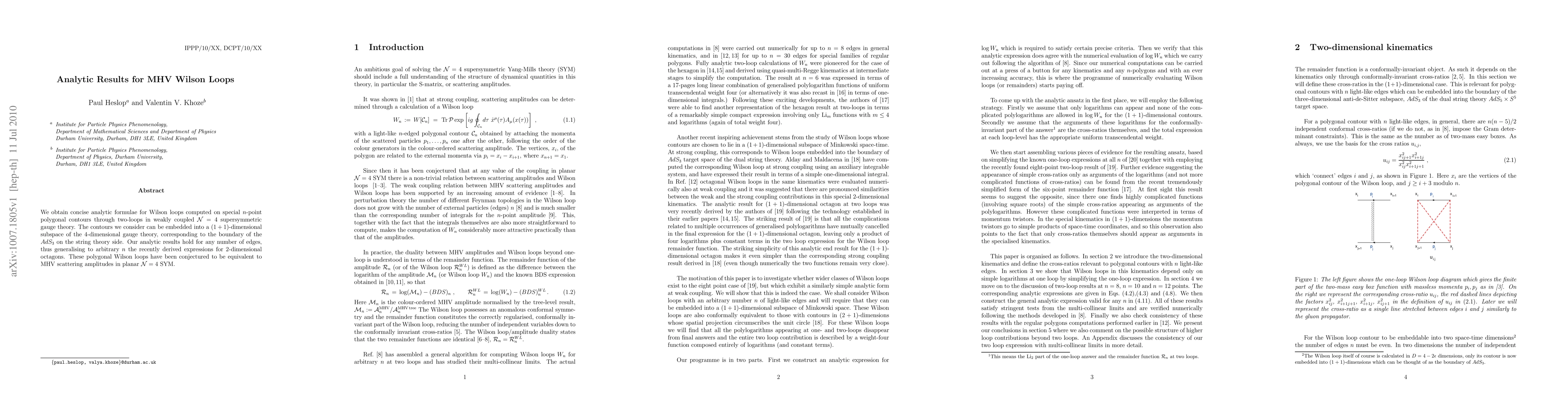 This paper presents analytic expressions for two-loop Wilson loops on n-point polygonal contours in N=4 supersymmetric gauge theory, generalizing previous results for octagons. The findings suggest a potential equivalence between these Wilson loops and MHV scattering amplitudes in planar N=4 SYM.